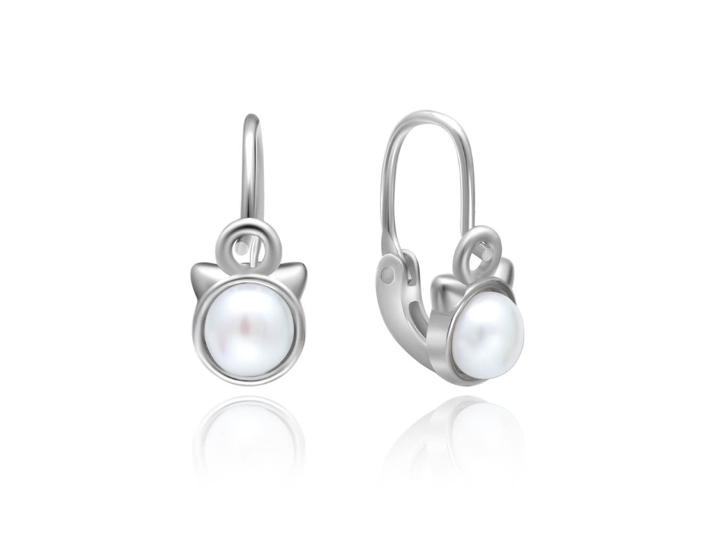 5181 Strieborné perlové náušničky MAČKA Ag 925; ≤1,6 g.