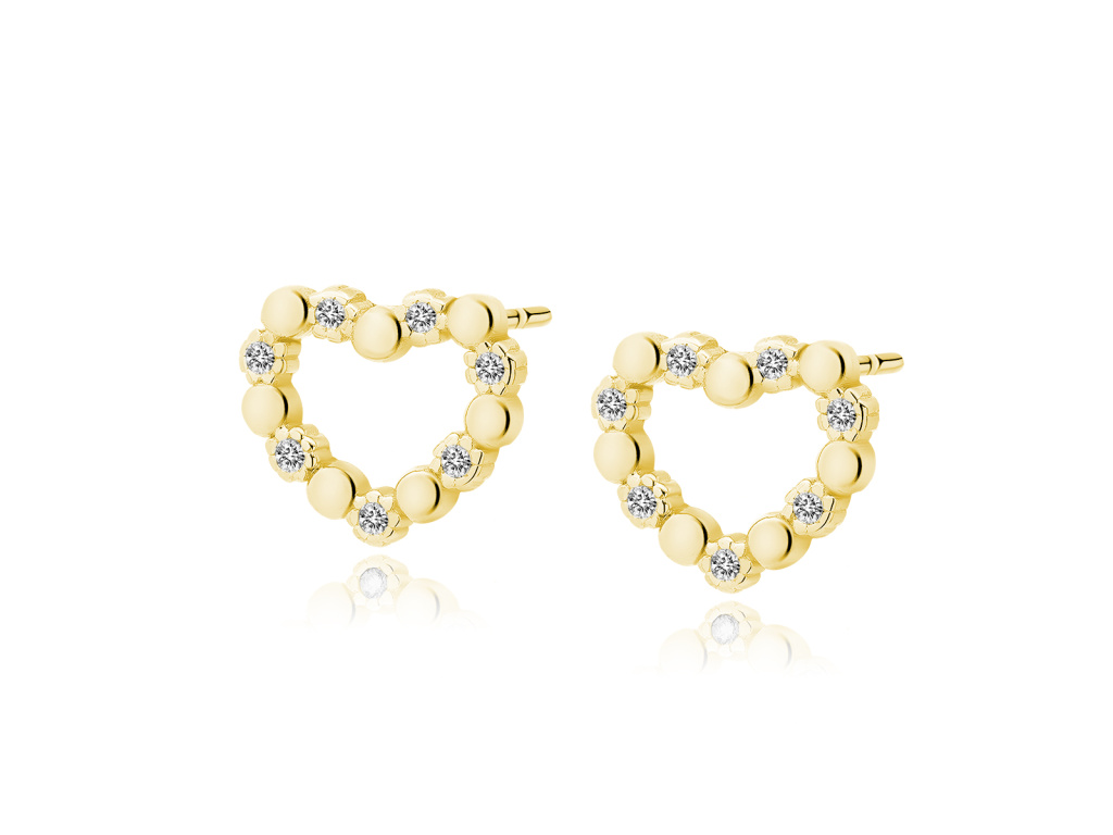 Strieborné pozlátené náušnice SRDCE s čírymi zirkónmi.