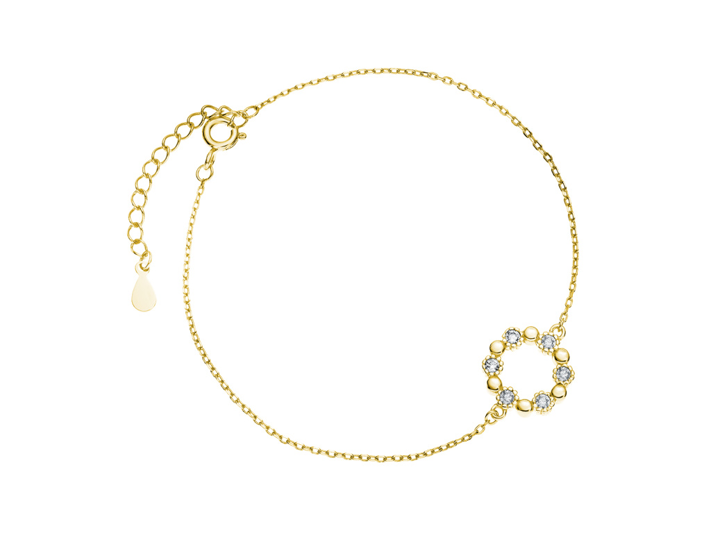 Strieborný pozlátený náramok KRUH s čírymi zirkónmi.