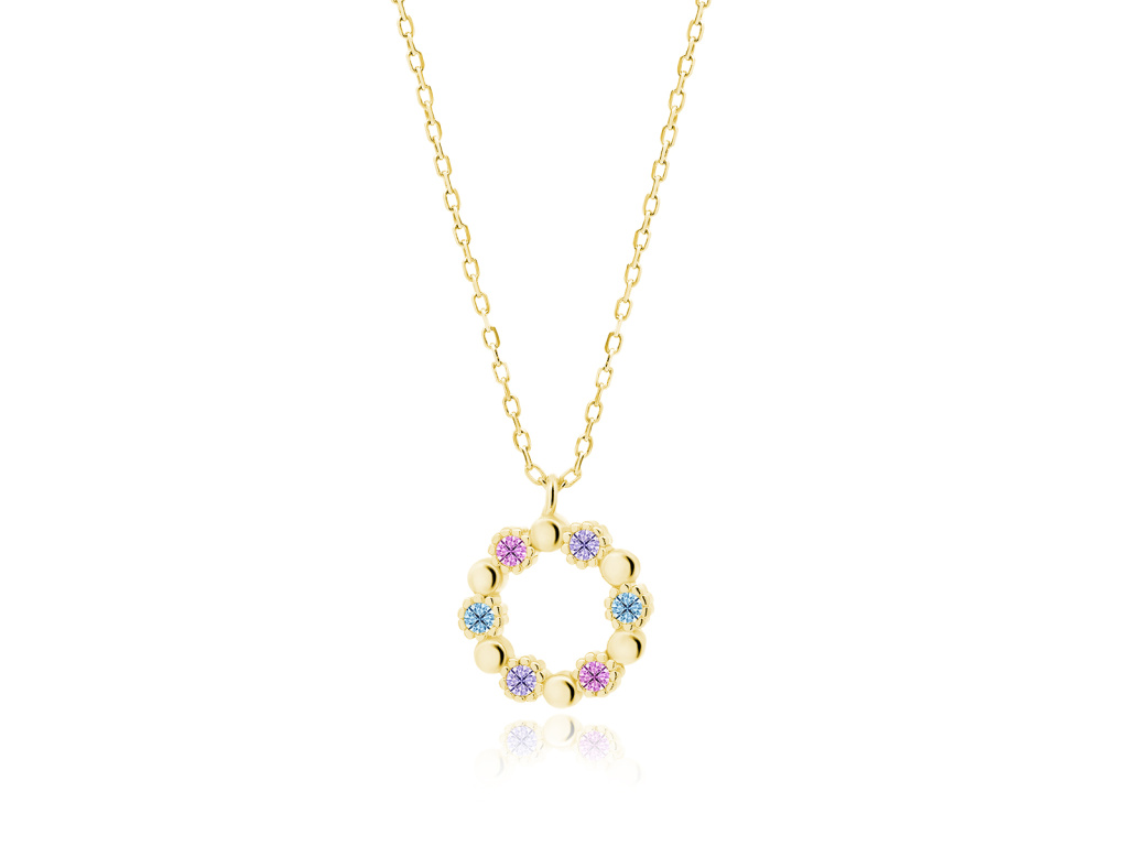 Strieborný pozlátený náhrdelník KRUH s viacfarebnými zirkónmi.