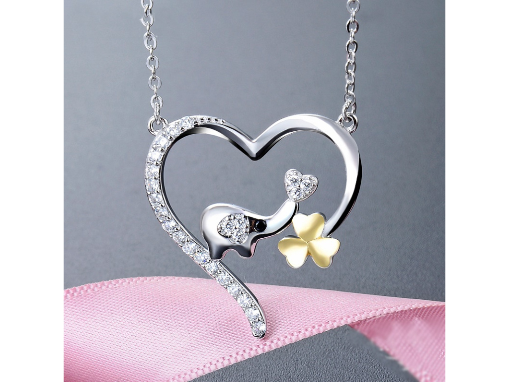 STRIEBORNÝ NÁHRDELNÍK SLON PRE ŠŤASTIE