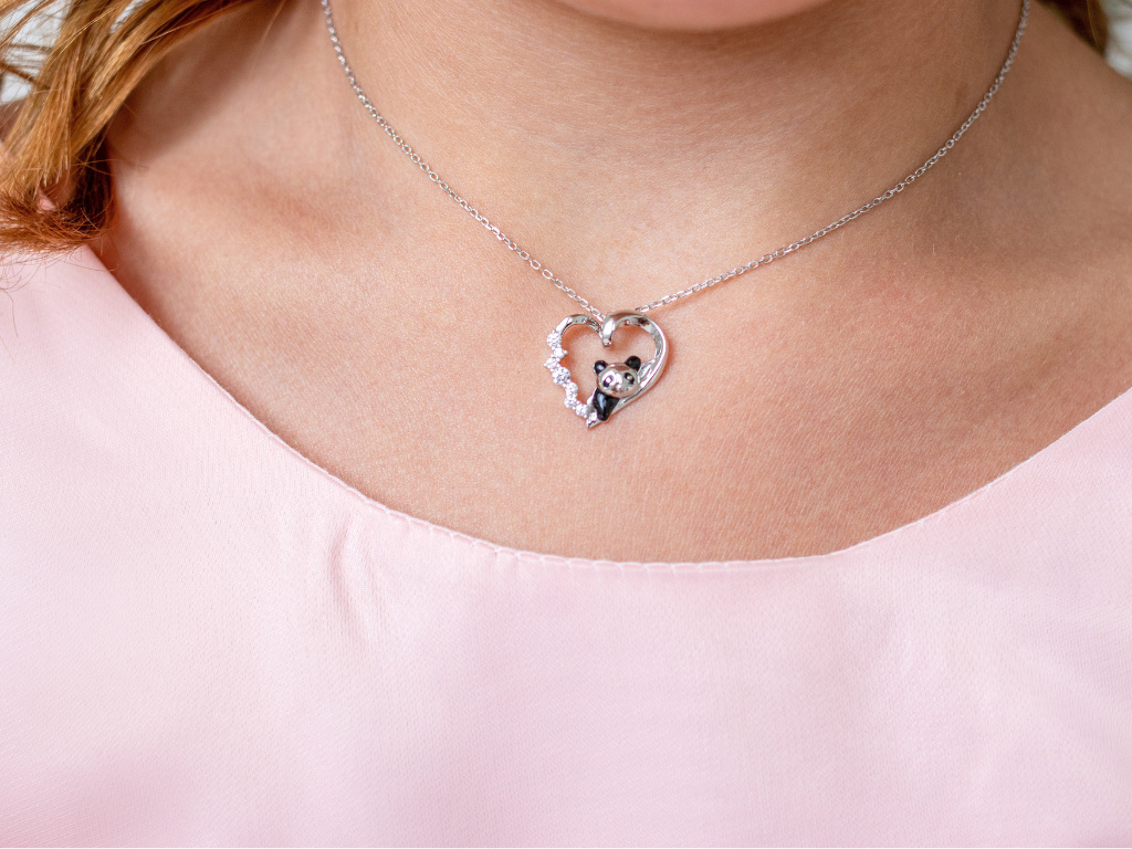 Srdiečko zdobia číre zirkóny a roztomilá panda.