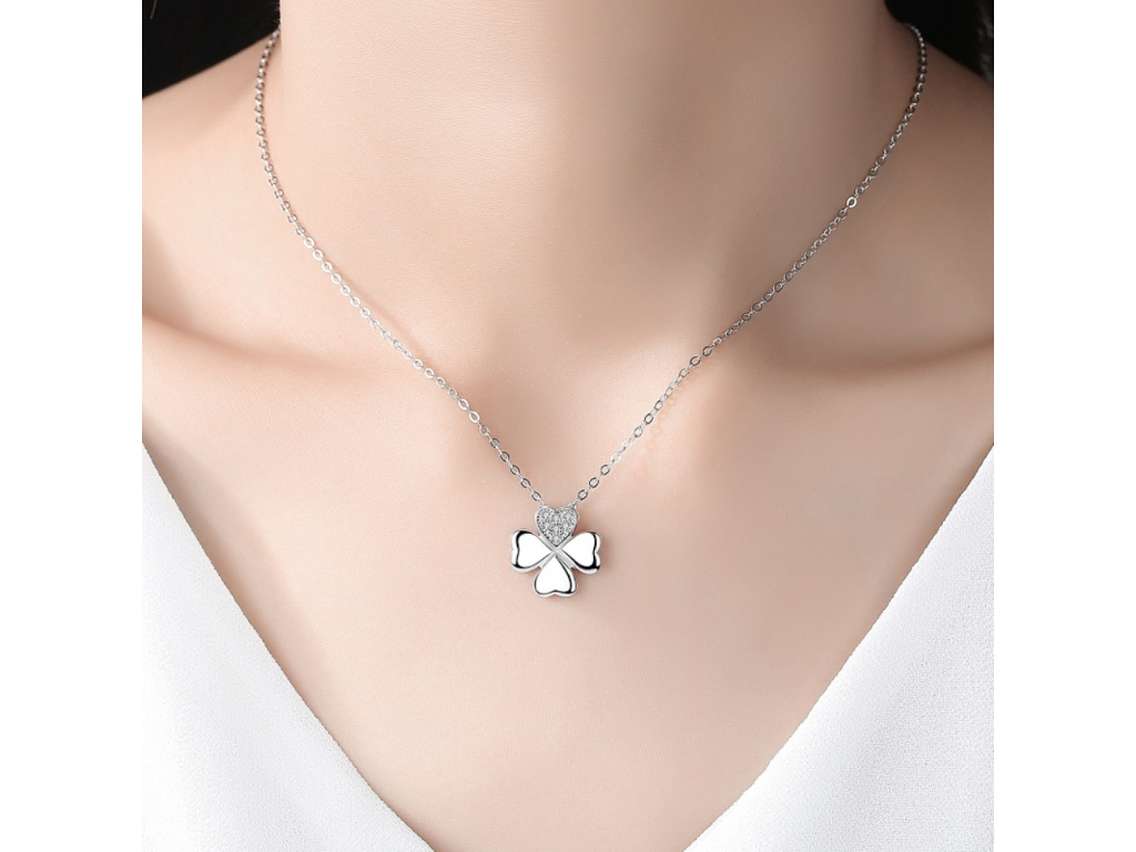 5443 Strieborný náhrdelník SRDIEČKOVÝ ŠTVORLÍSTOK Ag 925; ≤3,4 g.