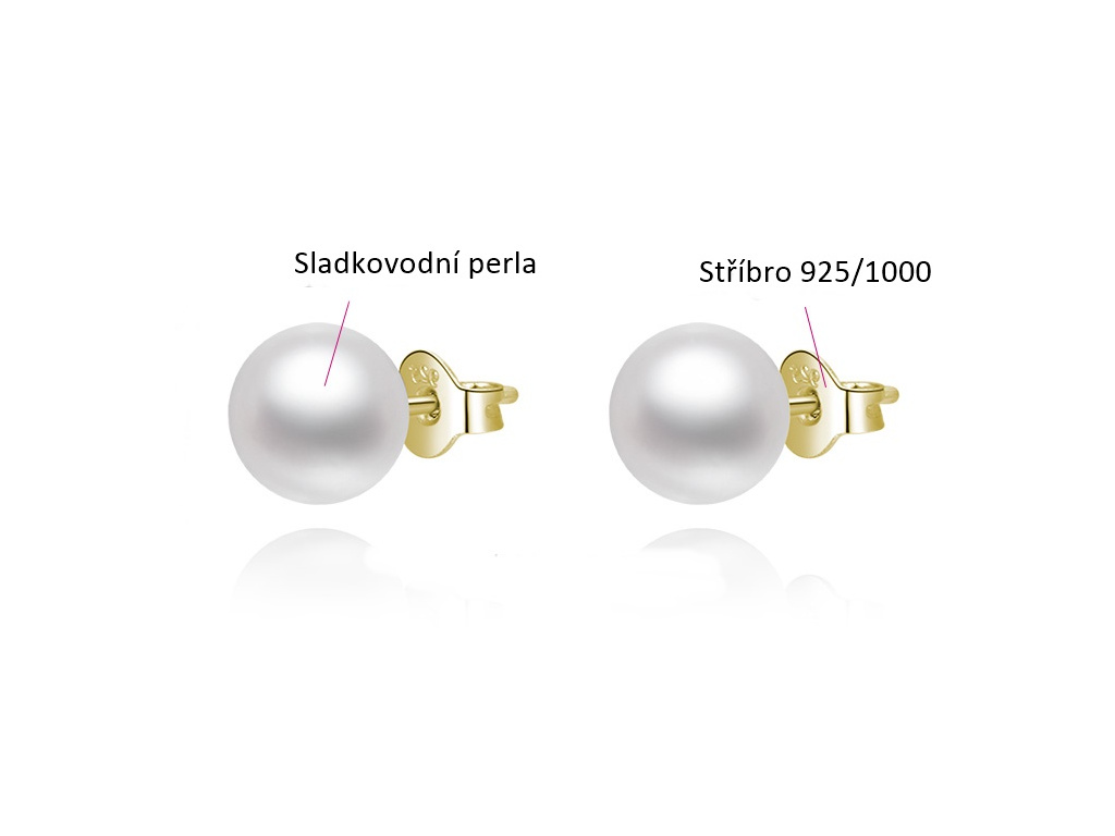 STRIEBORNÉ NÁUŠNICE 8mm SLADKOVODNÉ PERLY GOLD