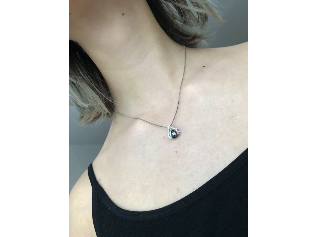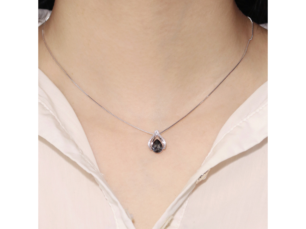 Platinovo modro-šedo-hnedý zirkón v tvare kvapky + drobné číre zirkóny.
