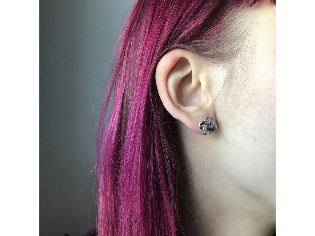 STRIEBORNÉ NÁUŠNICE NA SKRUTKU PREPLETANÉ