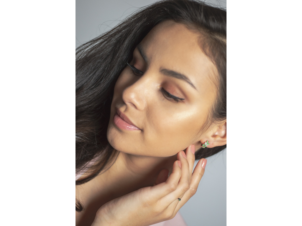 Veľmi pekný vetvičkový strieborný prsteň so zelenými listami.