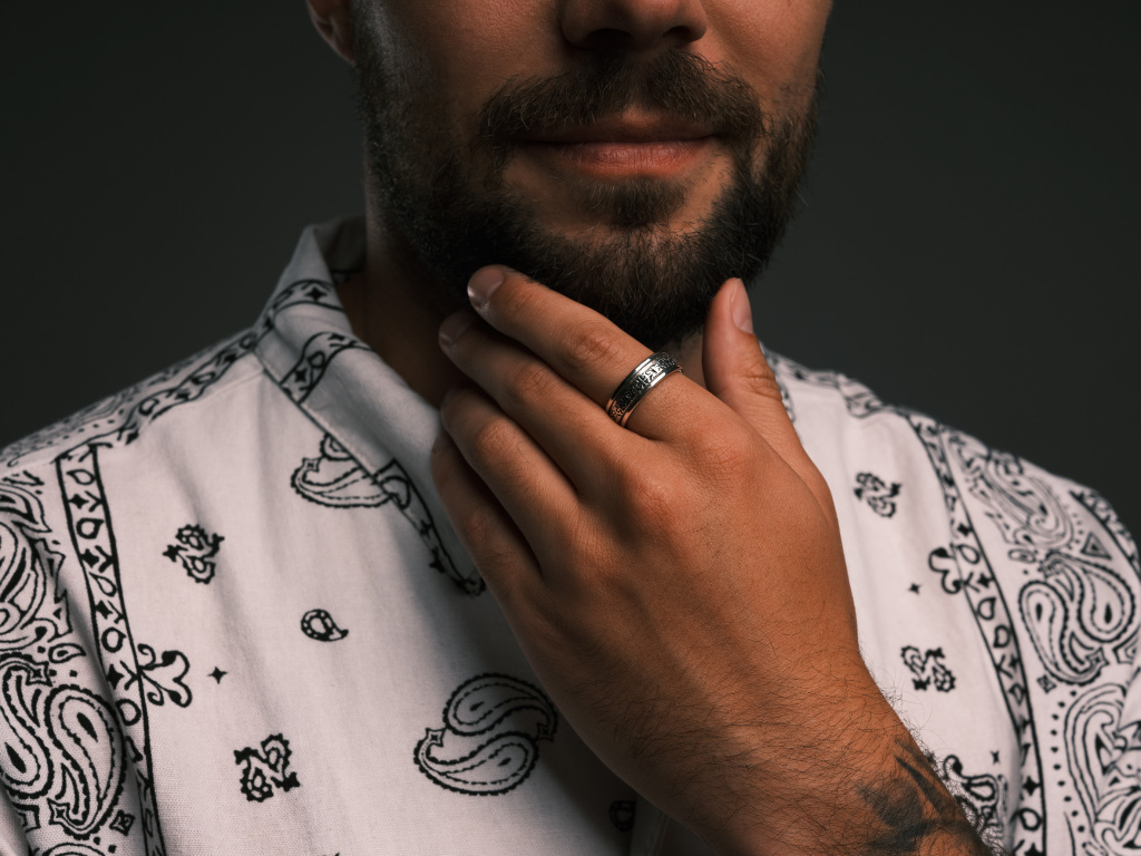 Šírka prsteňa: 7,4 mm, hr. 1,8 mm.