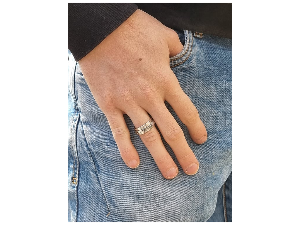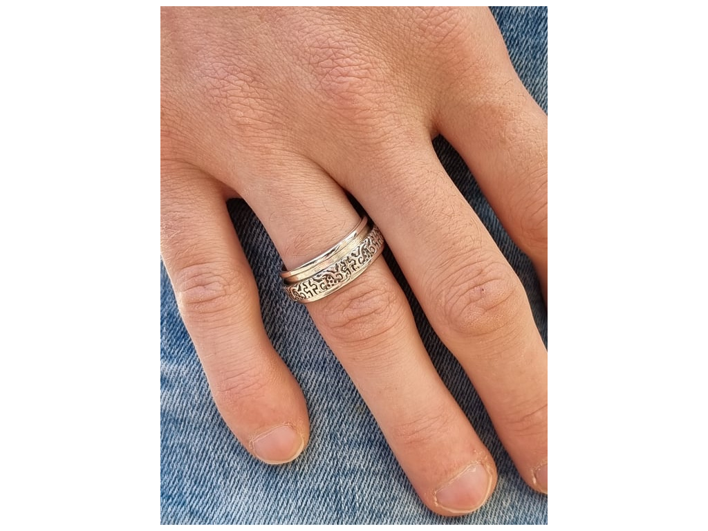 STRIEBORNÝ PRSTEŇ OBRUČ S PÁSIKOM