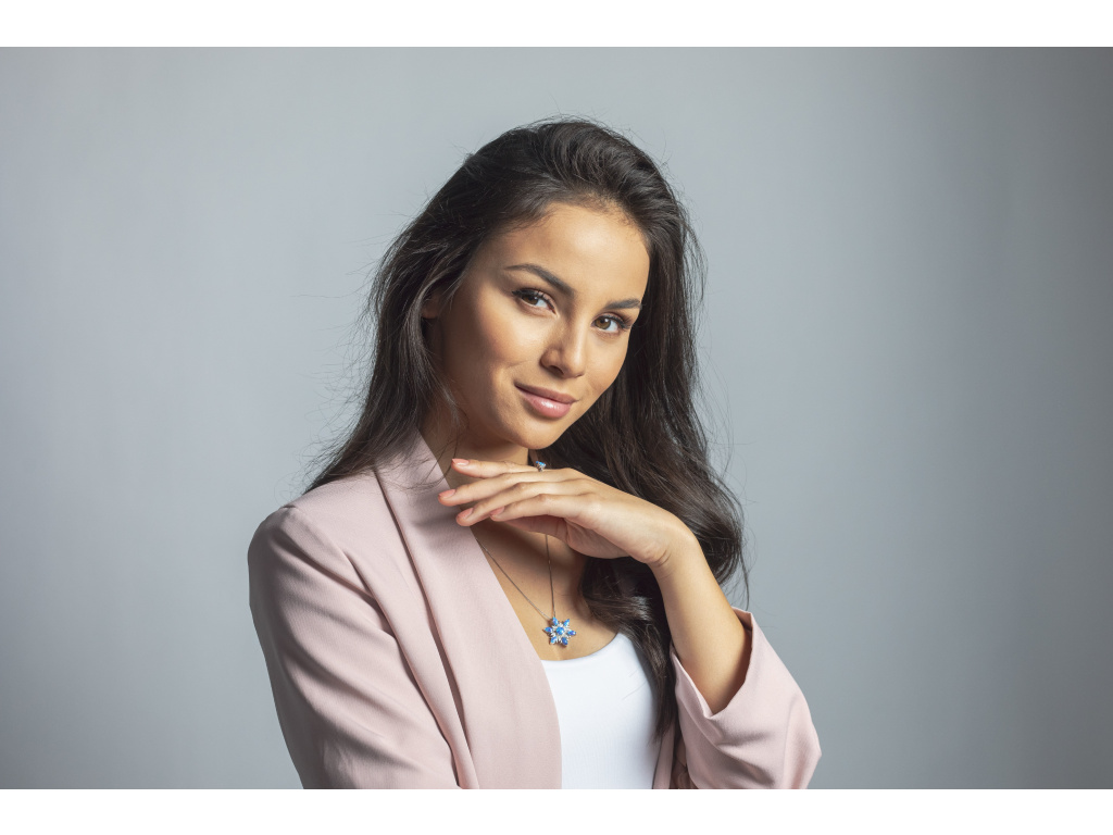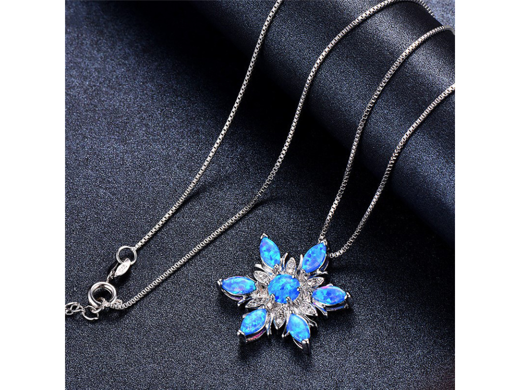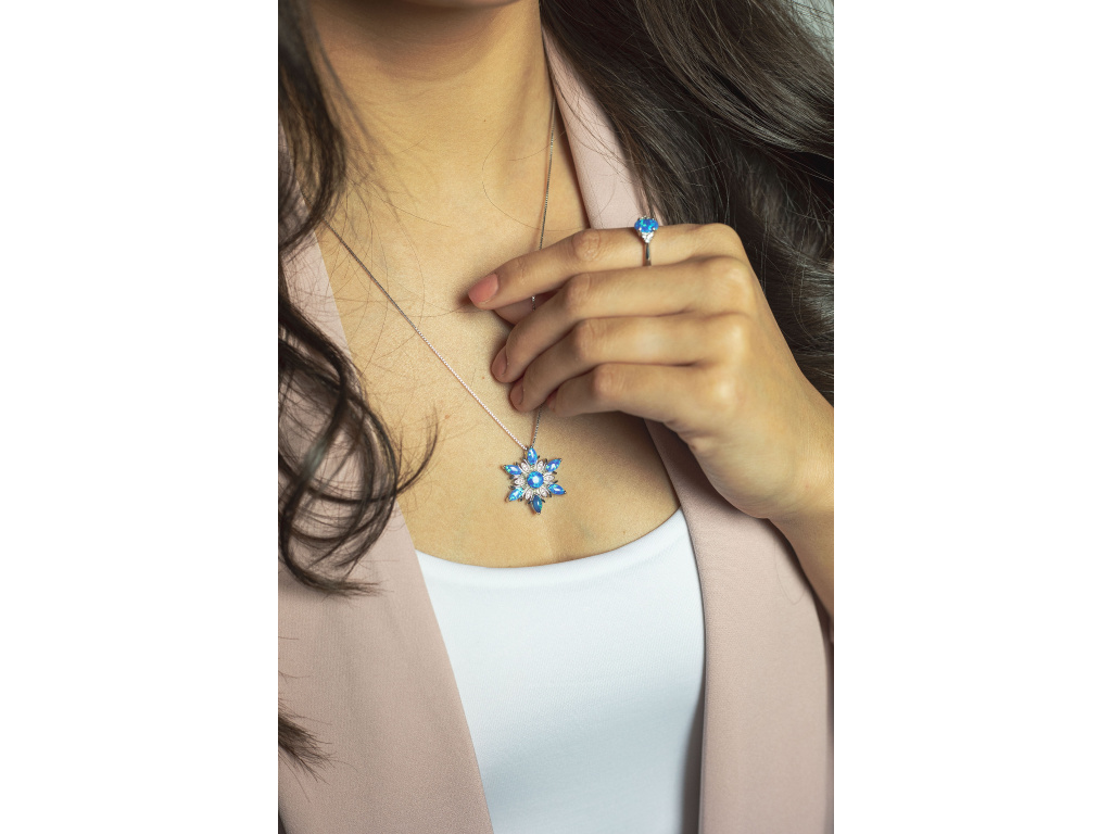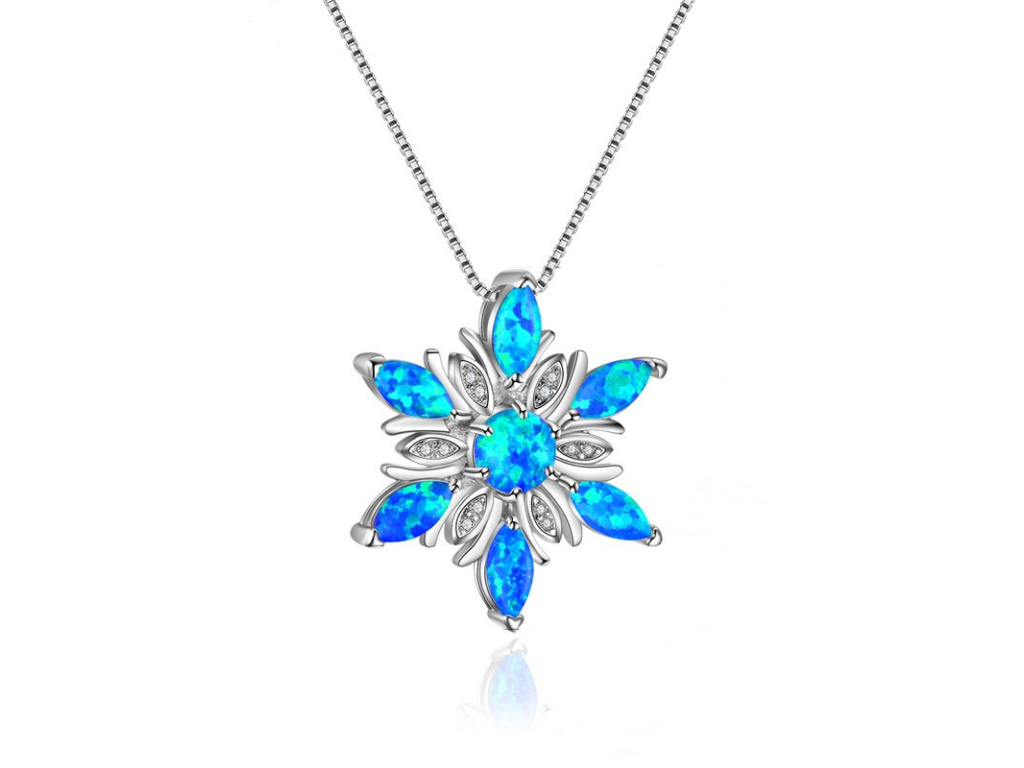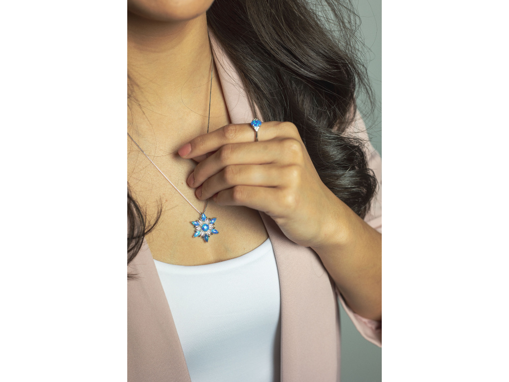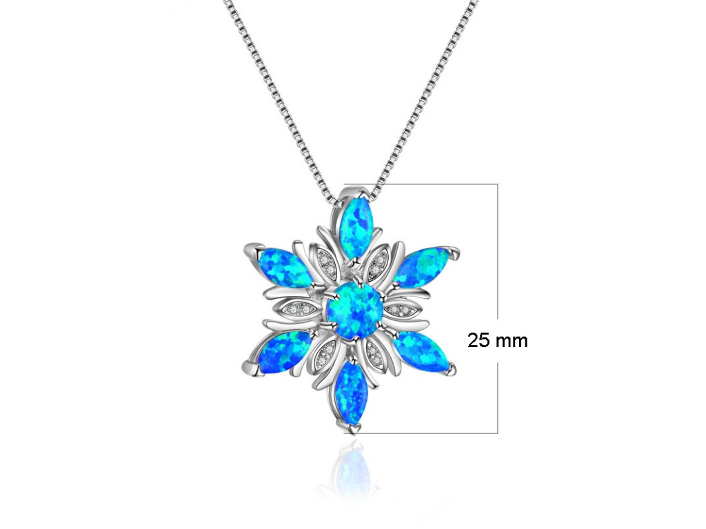 Krásny, veľký a neprehliadnuteľný motív snehovej vločky s modrým opálom.