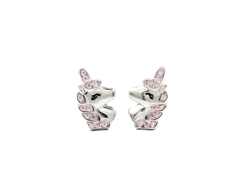 5894 Strieborné náušnice RUŽOVÝ JEDNOROŽEC Ag 925; ≤1,2 g.