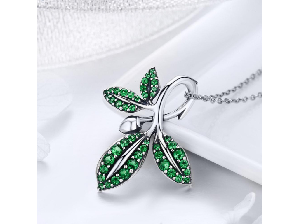 STRIEBORNÝ NÁHRDELNÍK ZELENÝ LIST