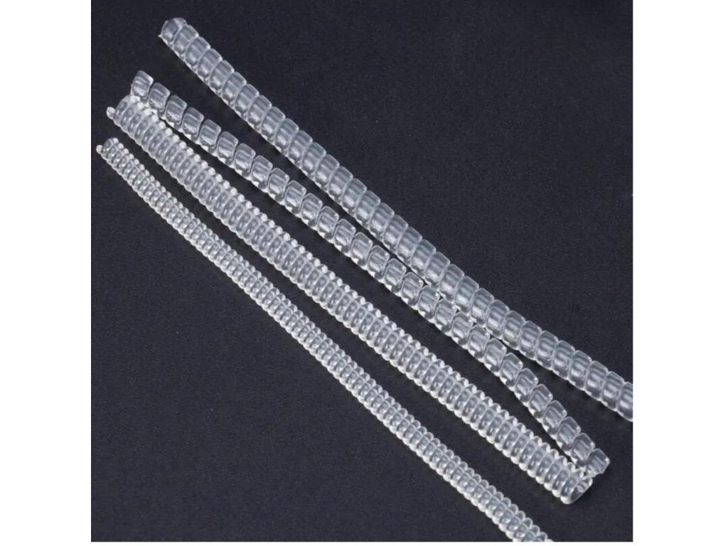 Špirálová pomôcka je vyrobená z transparentného plastu.