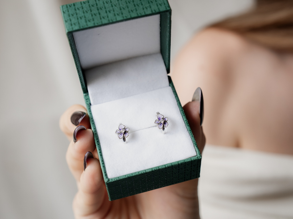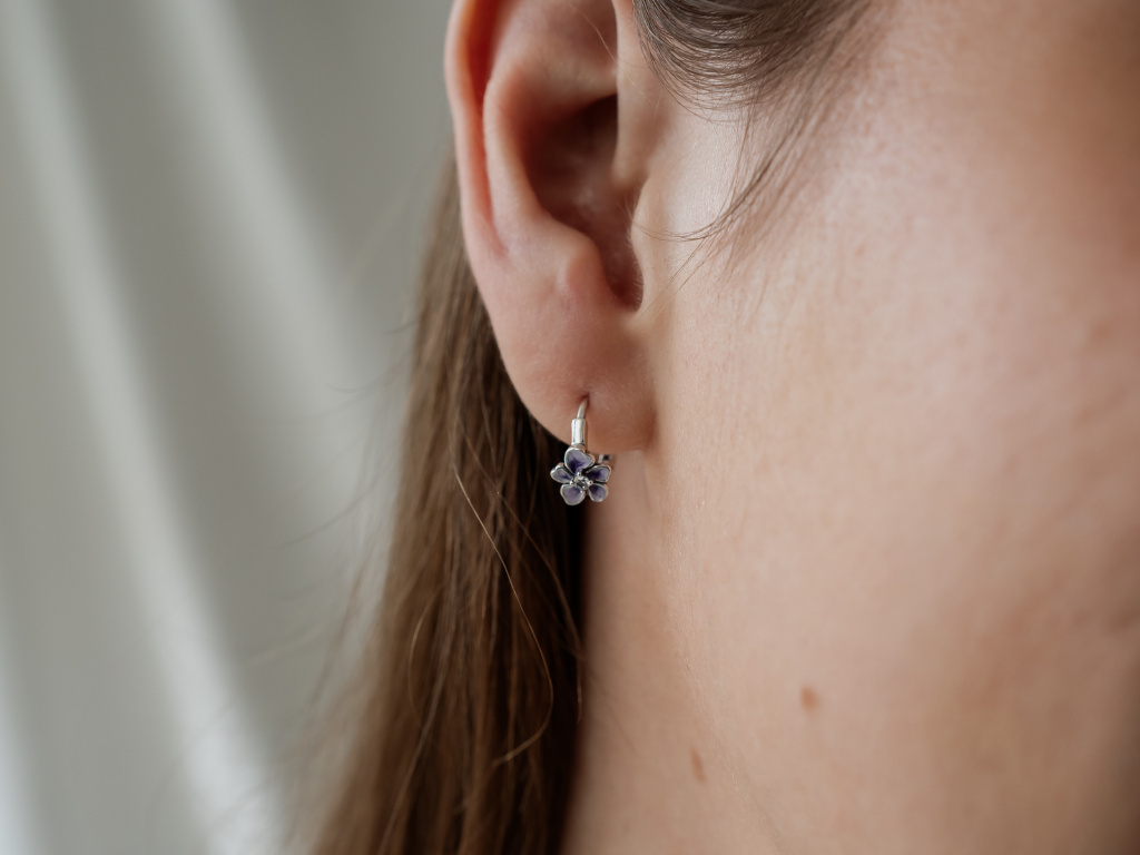 STRIEBORNÉ NÁUŠNICE FIALOVÝ KVET