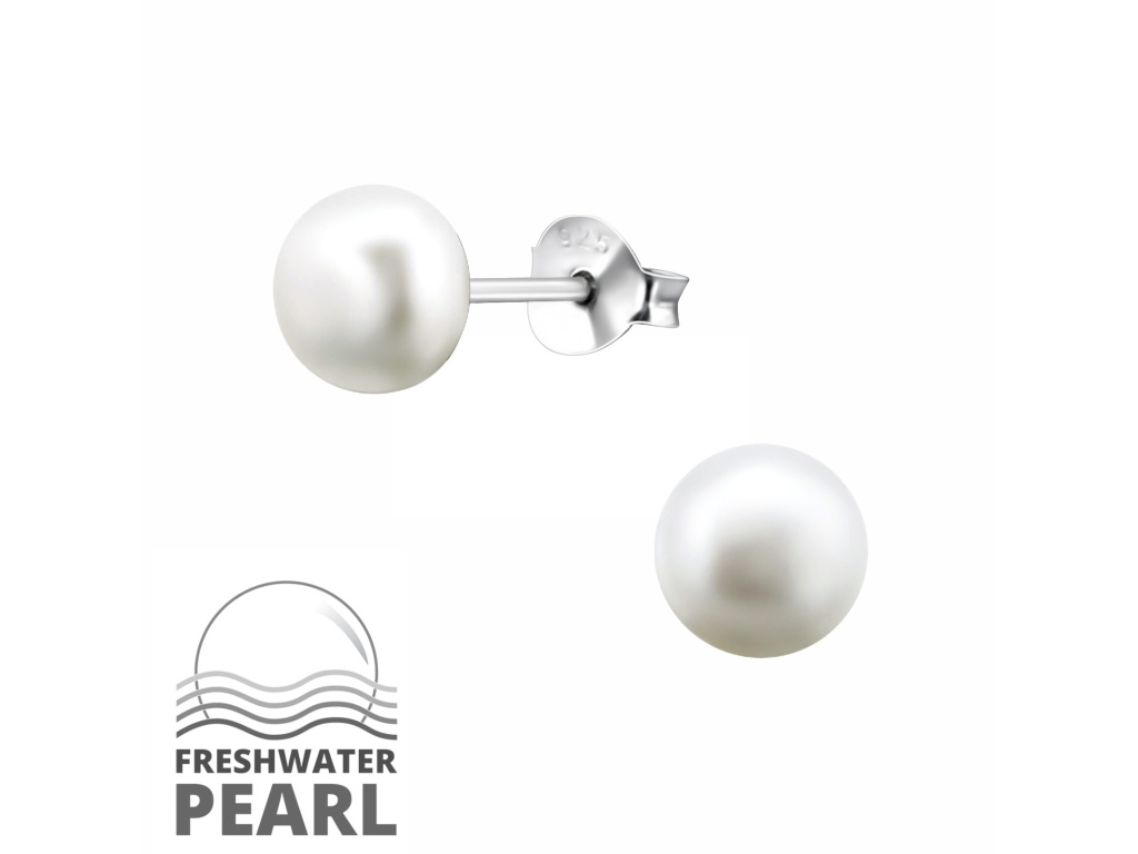 Strieborné náušnice s bielou sladkovodnou perlou o priemeru 6 mm.