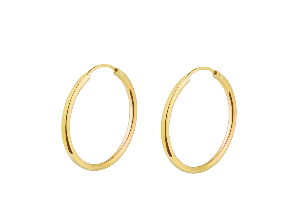 Strieborné pozlátené náušnice KRUHY GOLD s priemerom 3 cm.
