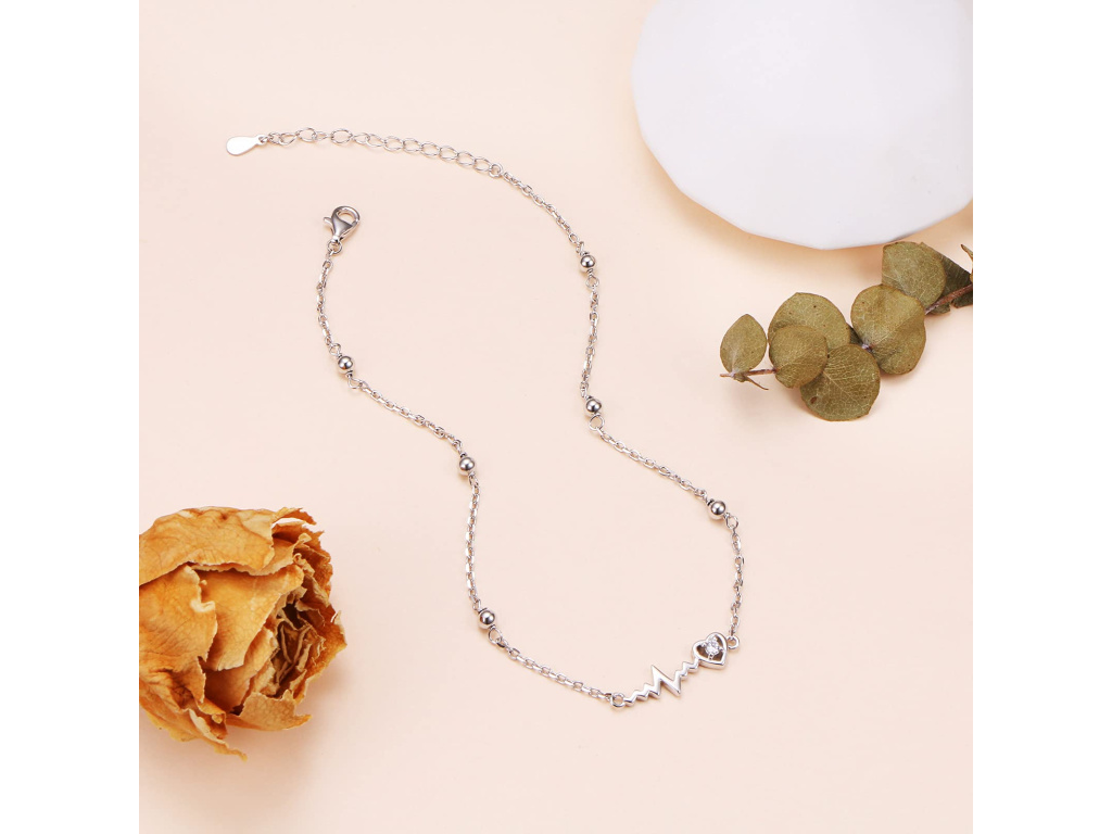 STRIEBORNÁ RETIAZKA NA NOHU TLKOT SRDCA