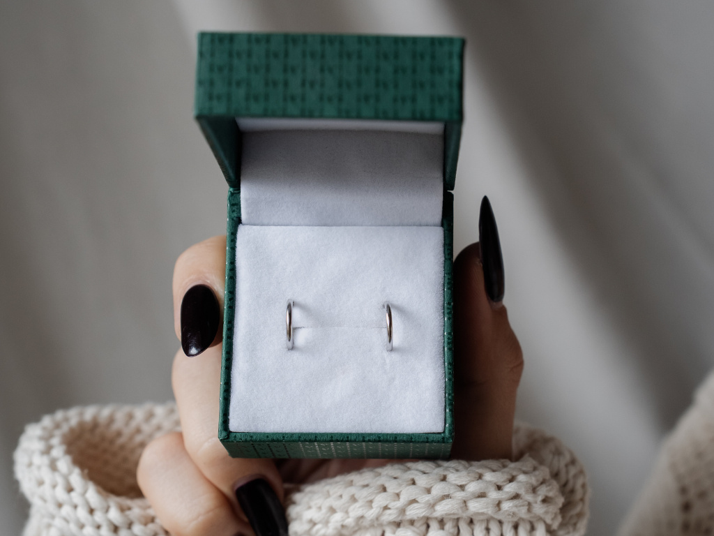 Náušnice sú vyrobené zo striebra 925/1000 a sú označené puncovou značkou rýdzosti.