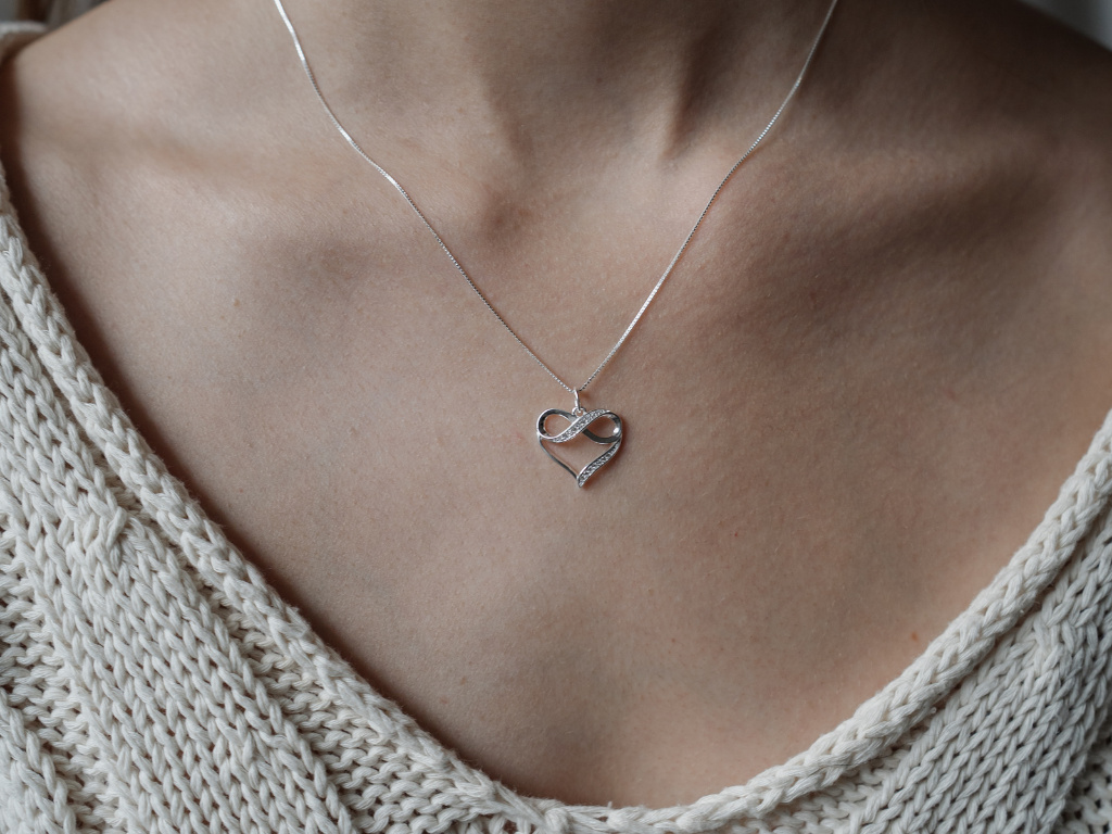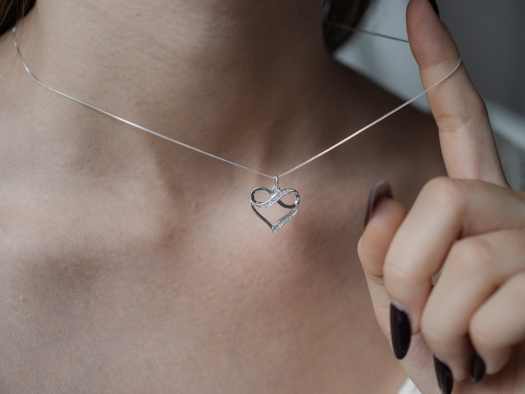 Sú chvíle, keď obyčajné slová nestačia – a práve vtedy prichádza na scénu šperk, ktorý prihovára hlasom božskosti. Tento strieborný náhrdelník Olivie prepája dva symboly, ktoré nemožno rozdeliť: srdce a nekonečno. Láska, ktorá presahuje čas aj priestor, jemne uzamknutá v nadčasovom lesku.