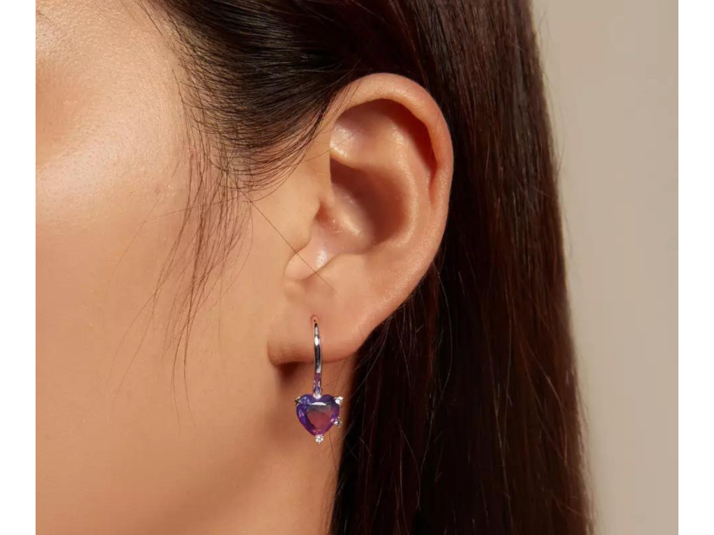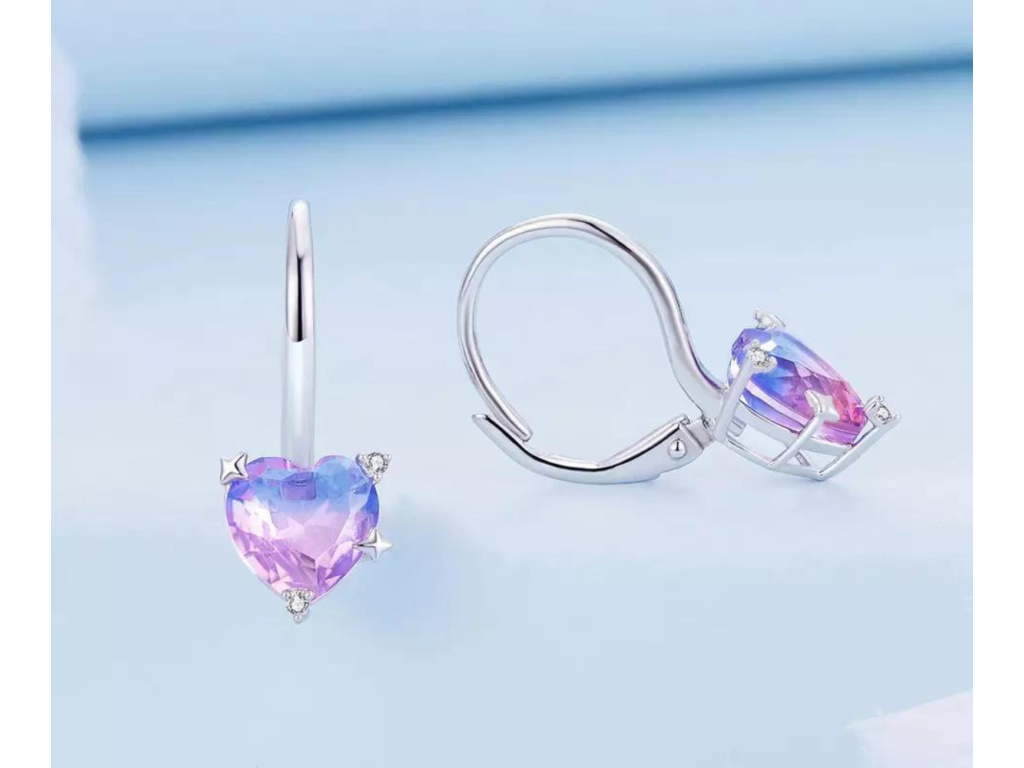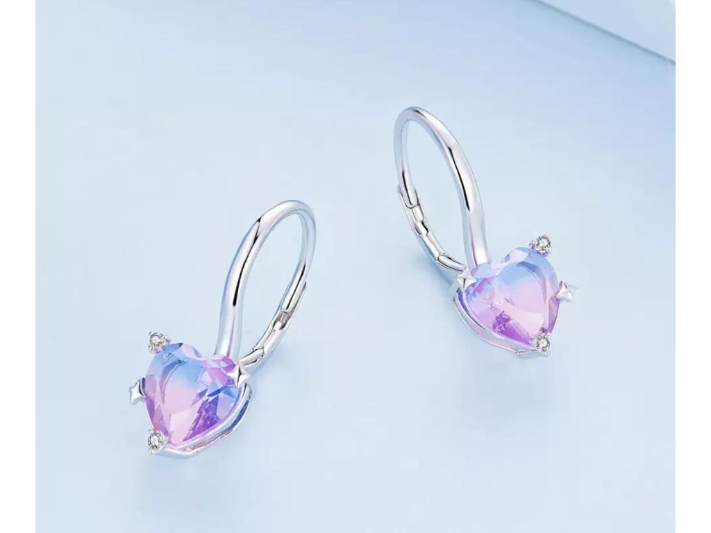 7196 Strieborné náušnice SKLENENÉ SRDCE Ag 925; ≤2,3 g.