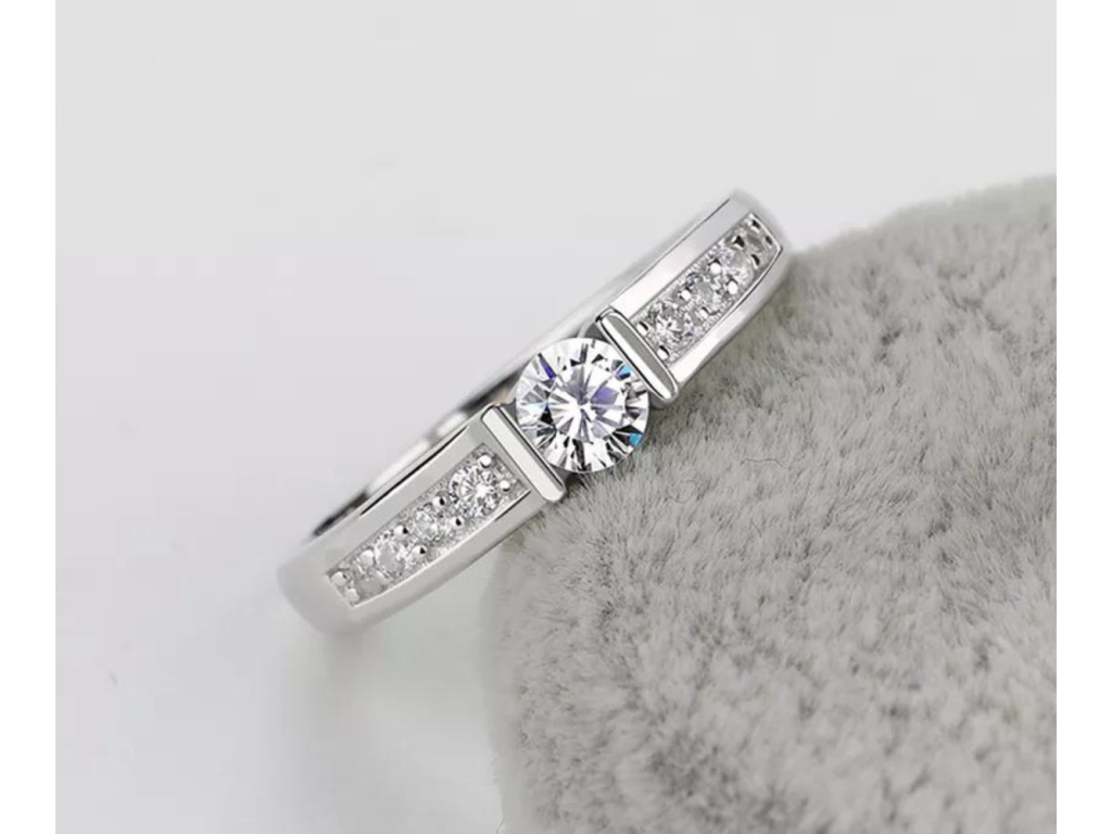 Nadčasový strieborný prsteň so vsadenými zirkónmi.