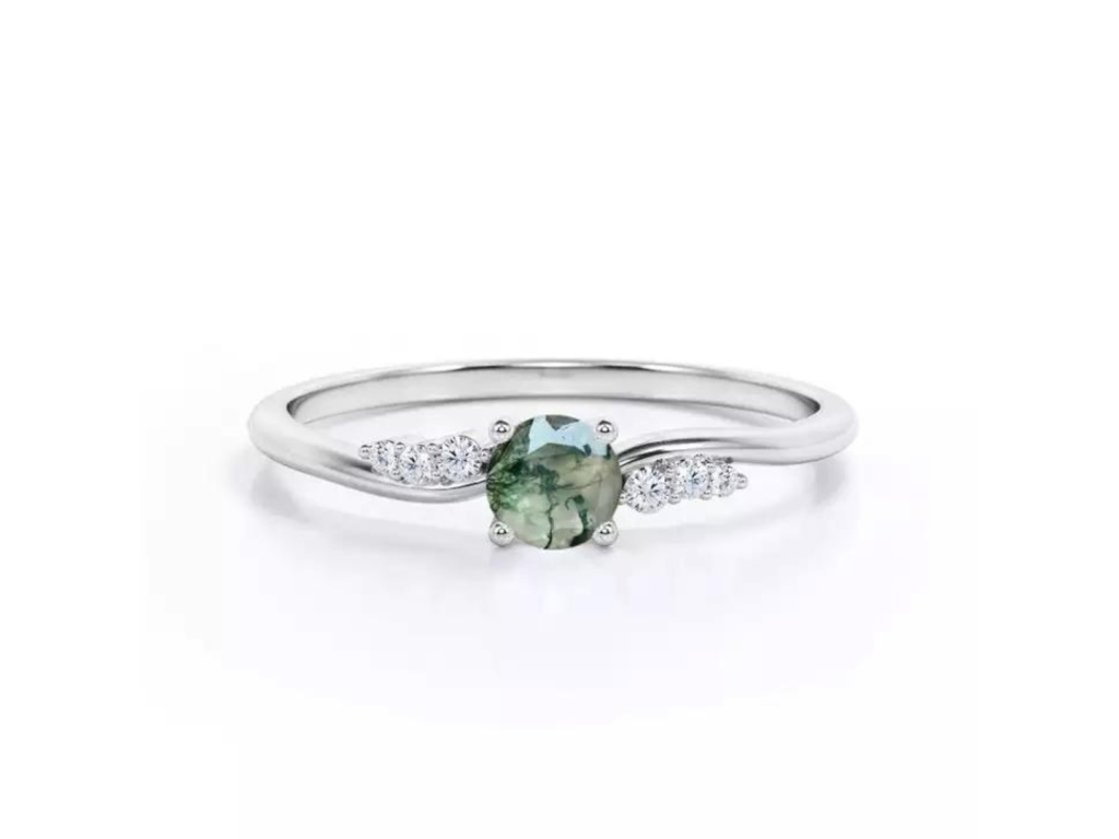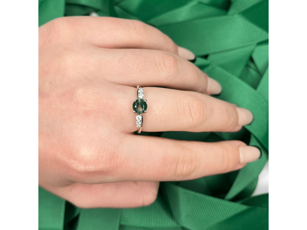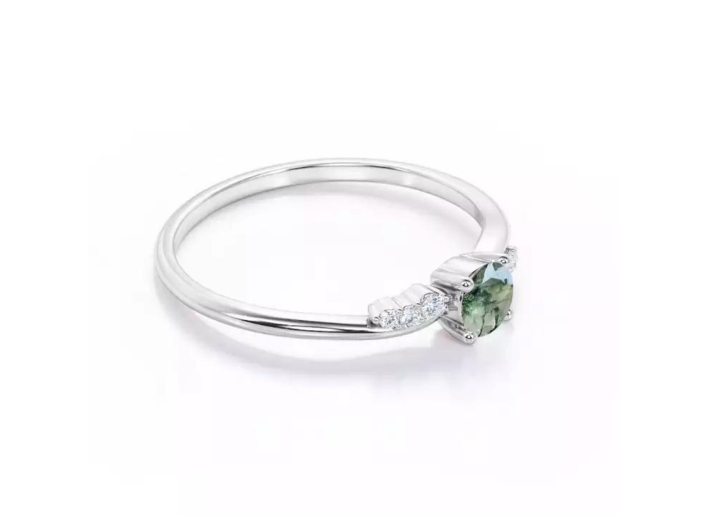 STRIEBORNÝ PRSTEŇ MECHOVÝ ACHÁT
