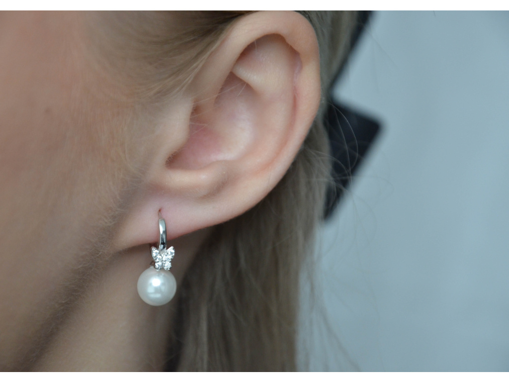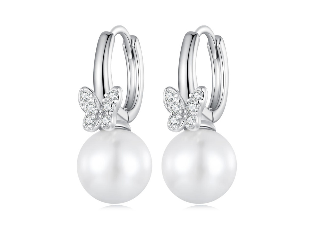 STRIEBORNÉ NÁUŠNICE MOTÝĽ S PERLOU