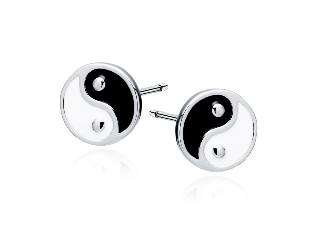 Strieborné náušnice s motívom JIN JANG symbolizujúce rovnováhu protikladov s priemerom 8 mm.