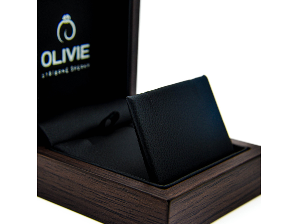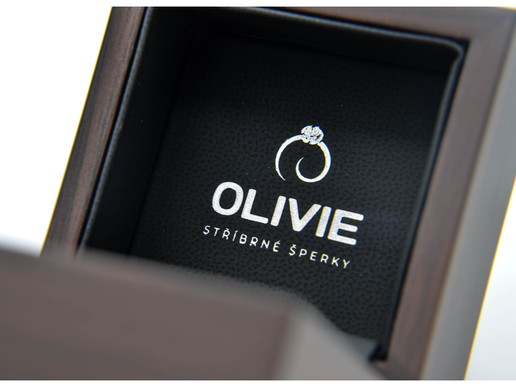 Vnútro krabičky je zdobené strieborným logom OLIVIE.