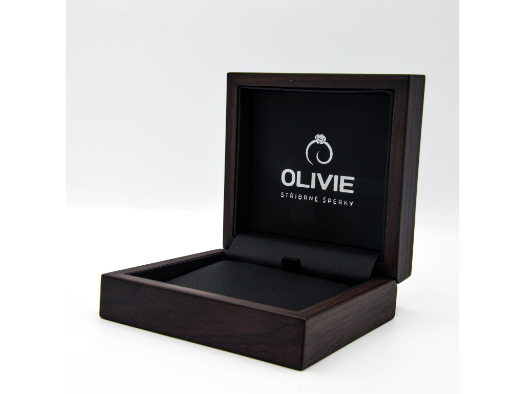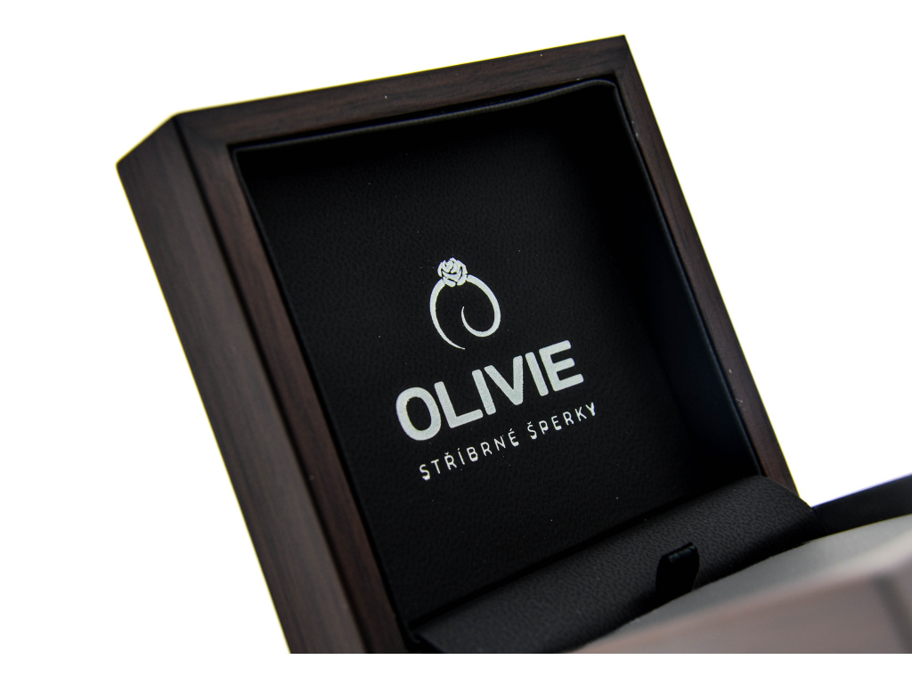 Vnútro krabičky je zdobené strieborným logom OLIVIE.