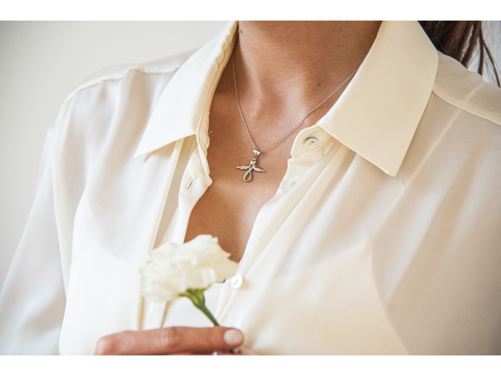 Přívěsek je vyrobený ze stříbra a je označený puncem ryzosti 925.