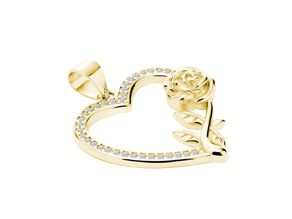 STRIEBORNÝ PRÍVESOK RUŽA V SRDCI GOLD