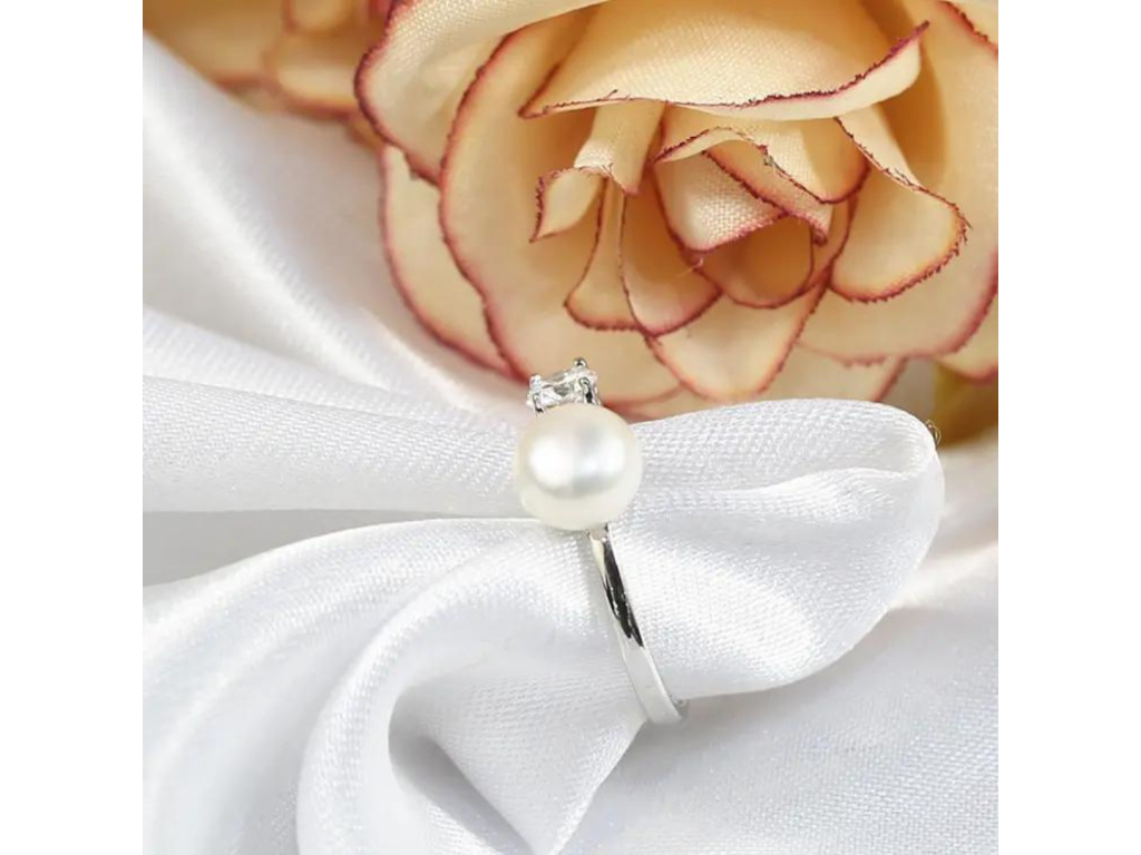 STRIEBORNÝ PRSTEŇ PRAVÁ PERLA POTATO