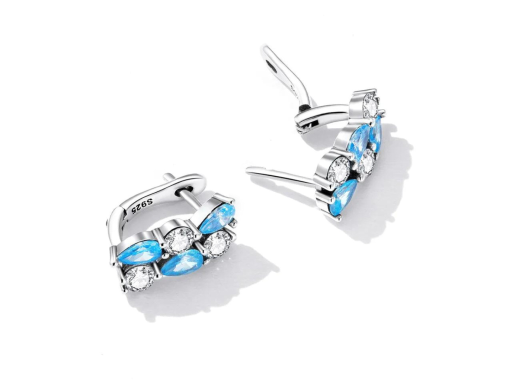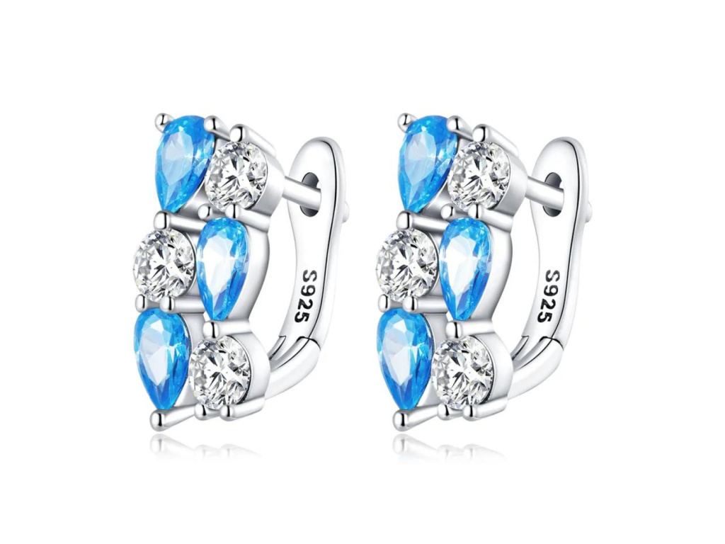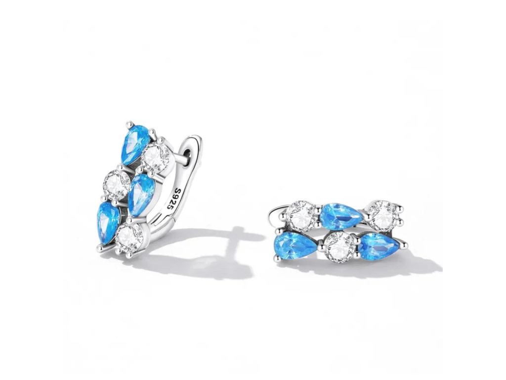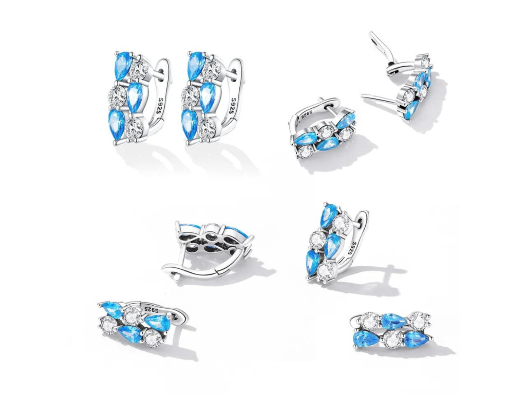 Zdobené vsadenými modrými a čírymi zirkónmi.