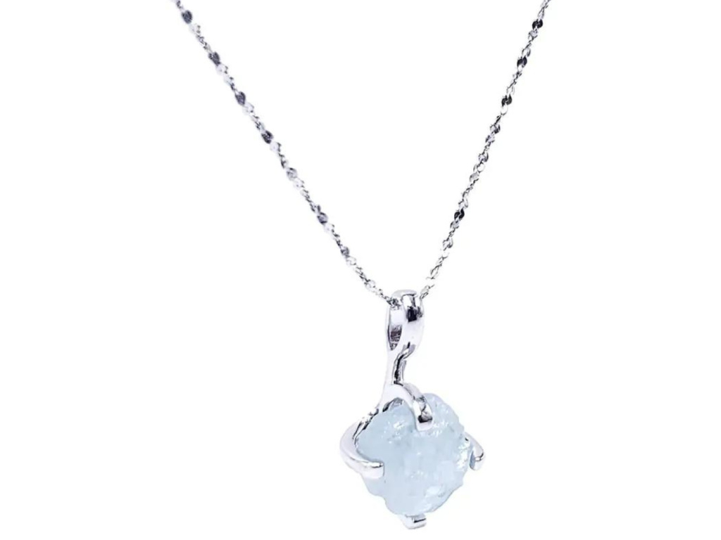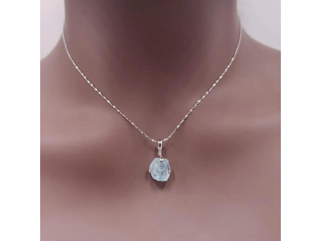 7760 Strieborný náhrdelník SUROVÝ AKVAMARÍN Ag 925; ≤3,1 g.