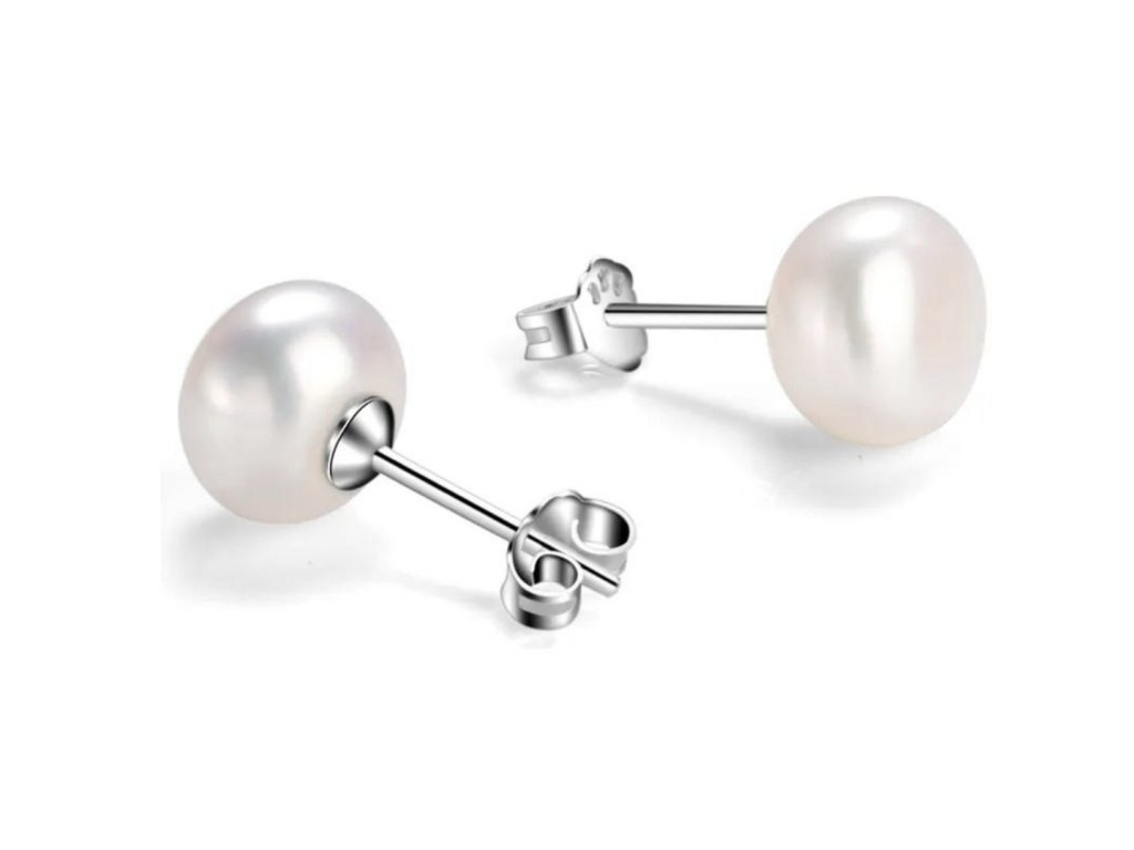Strieborné náušnice so sladkovodnou perlou s veľkosťou 6-7 mm.