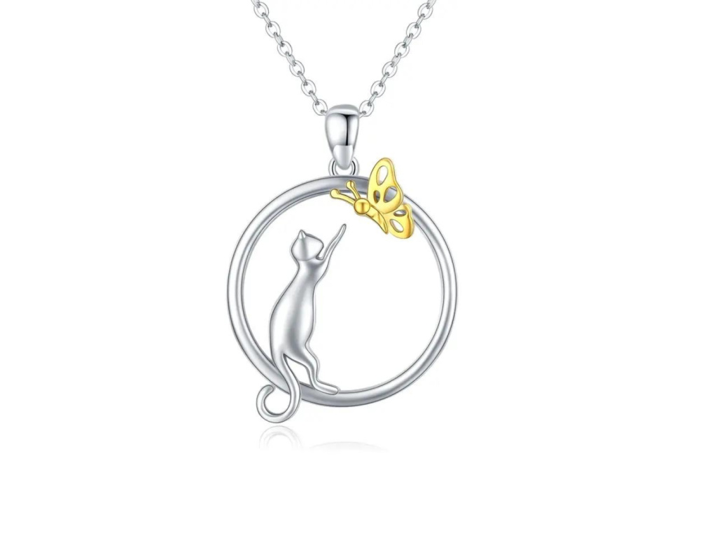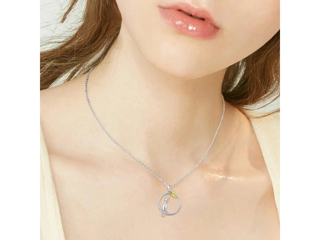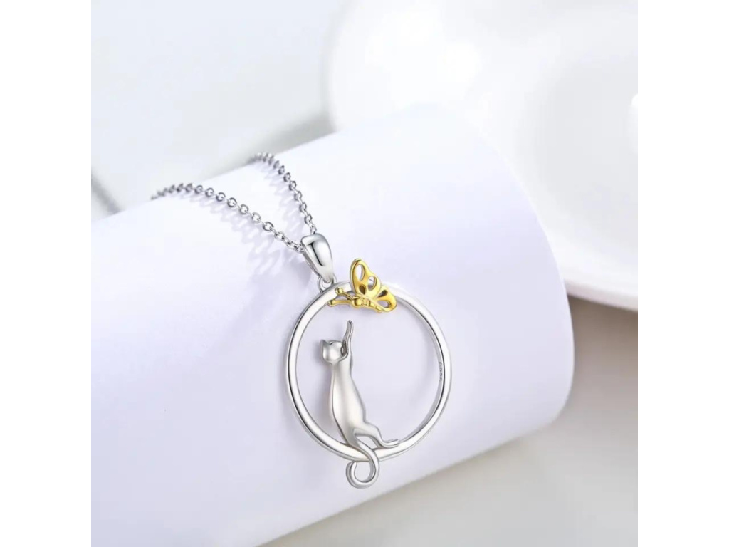 7839 Strieborný náhrdelník MAČKA A MOTÝĽ Ag 925; ≤3,5 g.