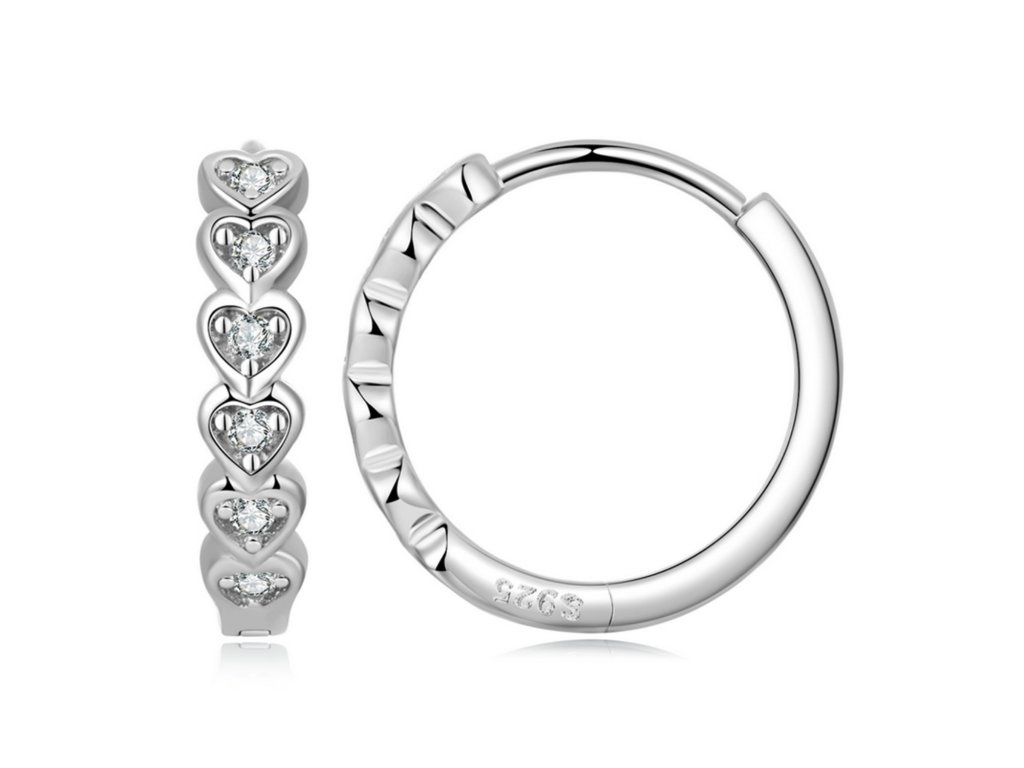 Parametre: zapínanie: puzetka; materiál: Ag 925/1000; povrch: rhodium. - Strieborné krúžky SRDCE – jemné krúžky s príveskom srdca; hravé a ženské.