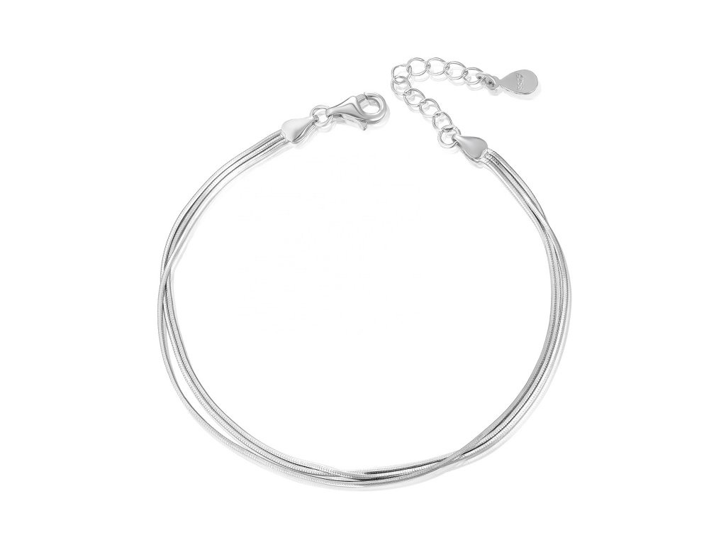Parametre: Ag 925/1000; povrch: ródium; dĺžka 45 cm; šírka cca 1 mm; hmotnosť ≤0,9 g. - Strieborný náramok TRI ŽIVOTY – tri hadie retiazky v jednom minimalistickom náramku.