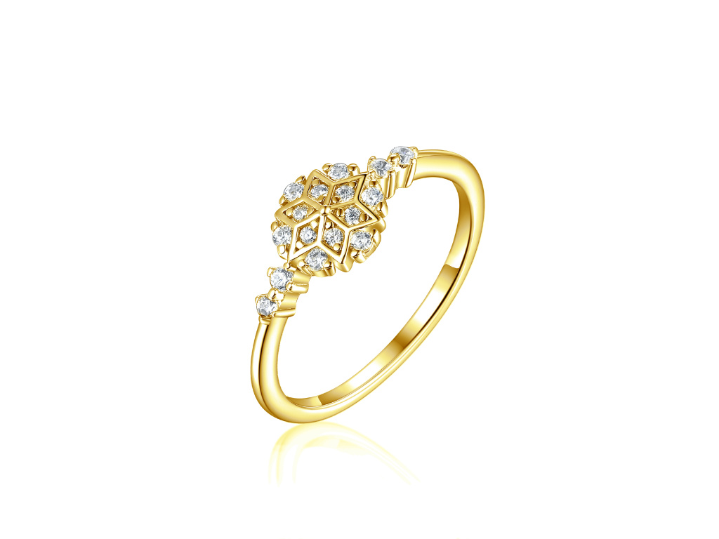 STRIEBORNÝ PRSTEŇ SNEHOVÁ VLOČKA GOLD