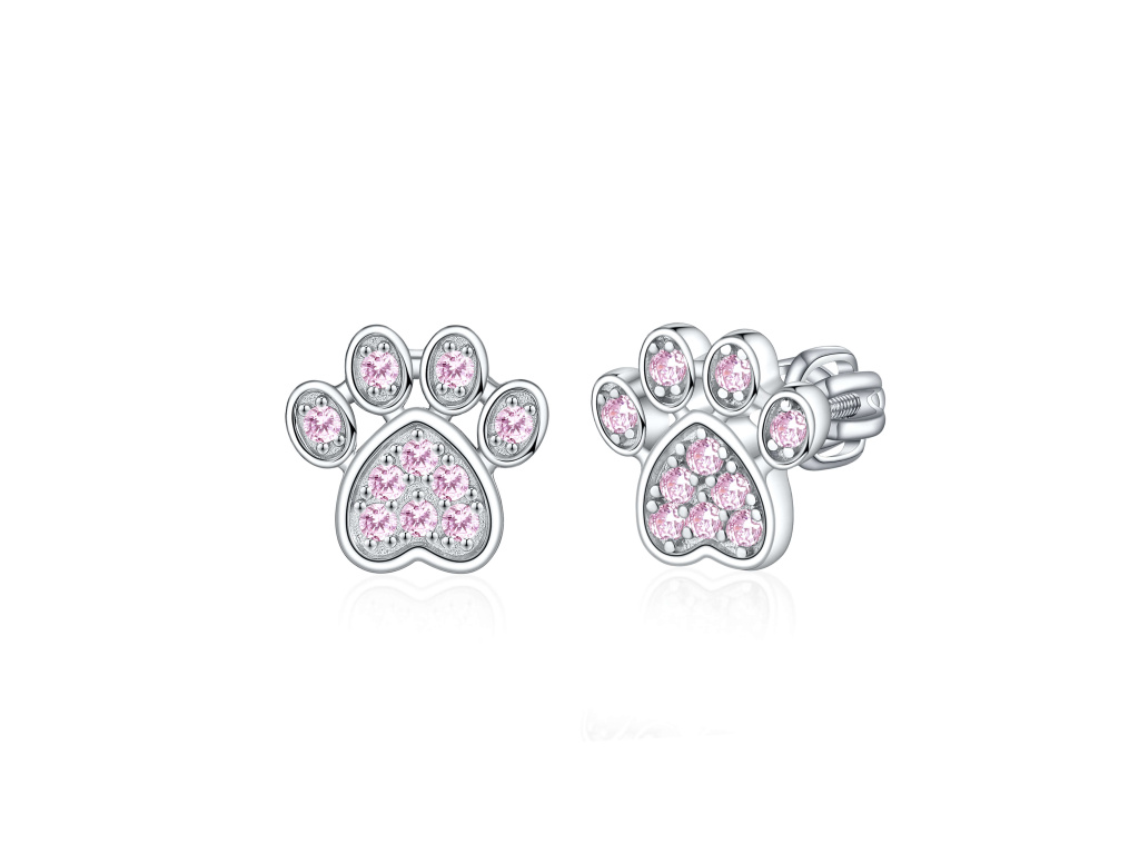 8093 Strieborné náušnice na skrutku TLAPKA PINK Ag 925; ≤2,1 g.