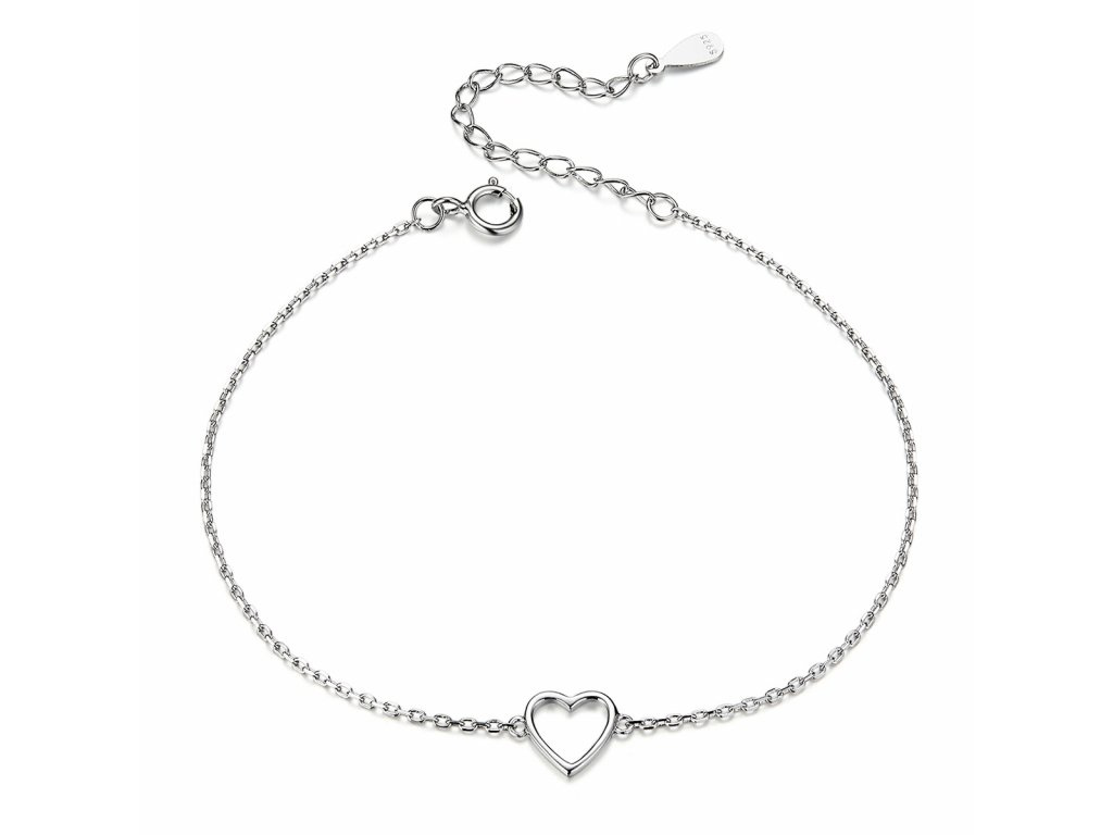 Parametre: dĺžka retiazky 45 cm; prívesok 5,5 × 5 mm; Ag 925/1000; povrchová úprava: rhodium; hmotnosť ≤1,7 g. - Strieborný náramok SRDÍČKO – čistý retiazkový náramok s jemným srdiečkom; ľahko kombinovateľný každý deň.