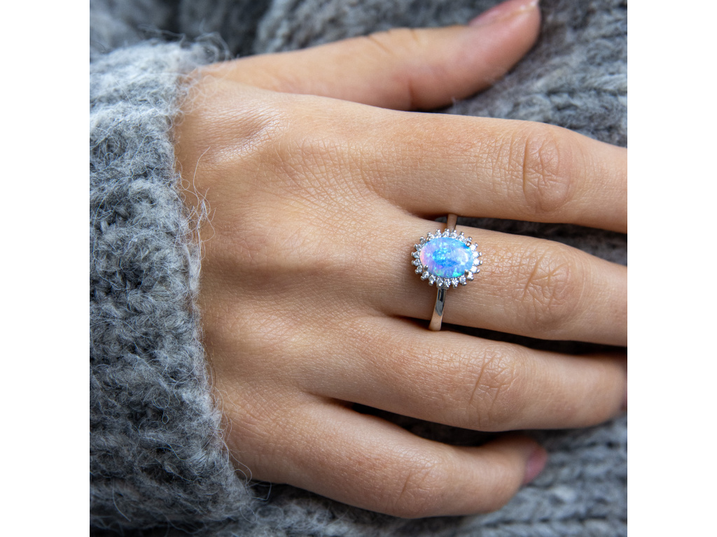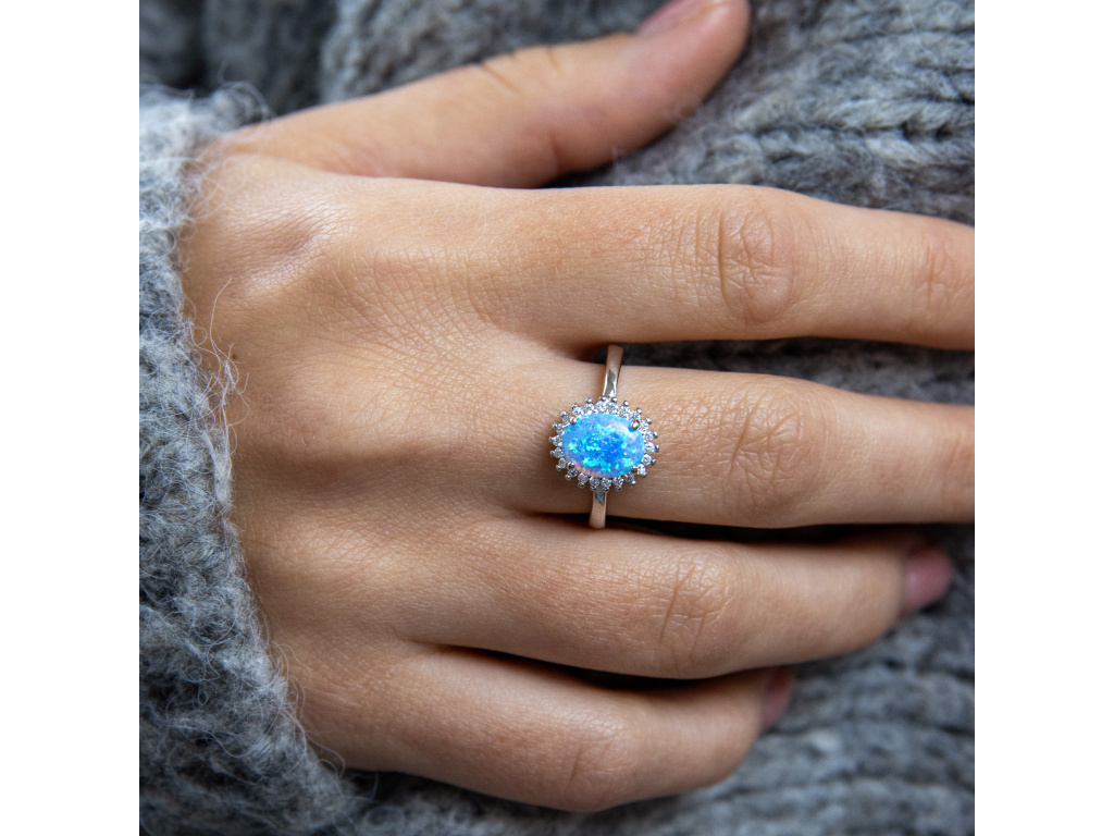Hlavný kameň: modrý laboratórny opál 9 mm x 7 mm.