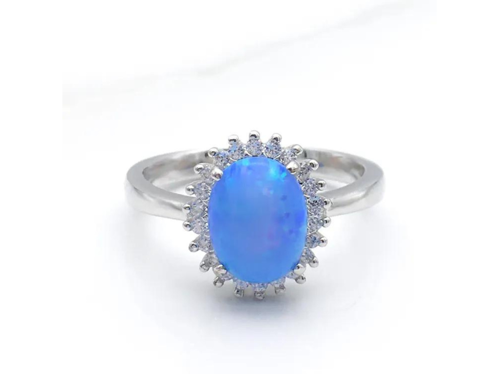 8319 Strieborný prsteň MODRÝ OPÁL Ag 925; ≤3,1 g.