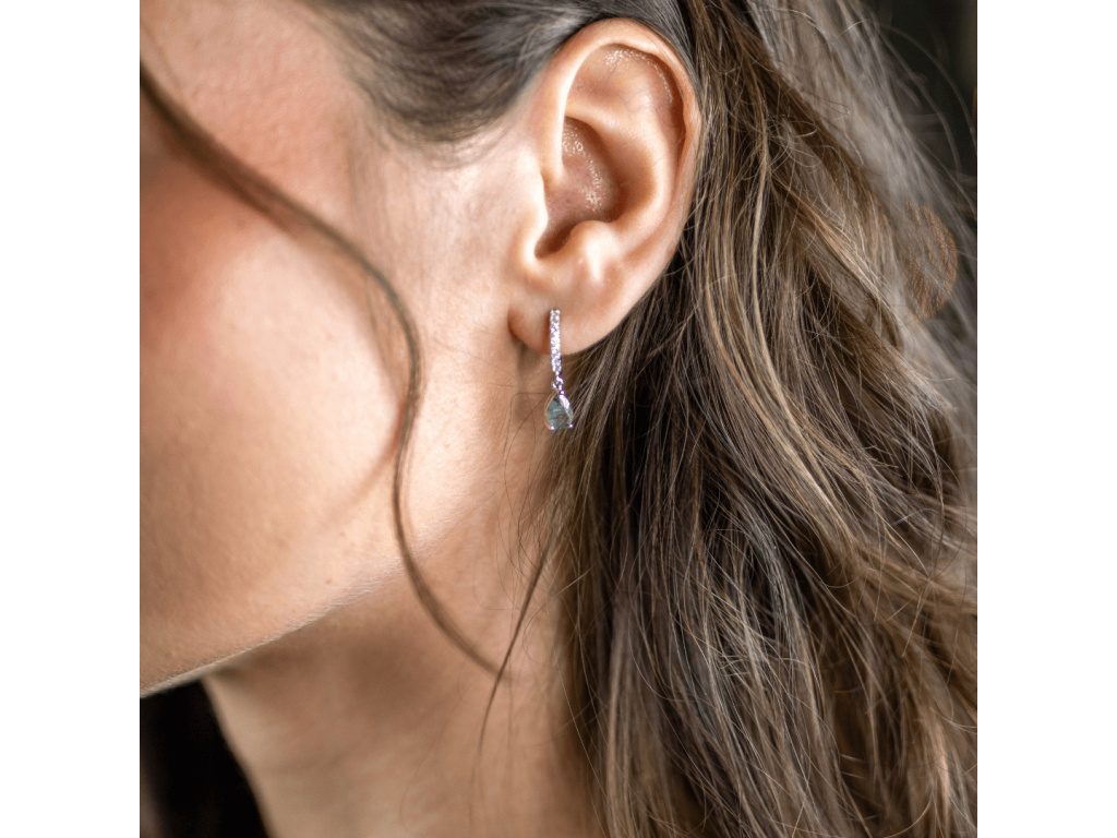 Náušnice sú vyrobené zo striebra 925/1000 a sú označené puncovou značkou rýdzosti.