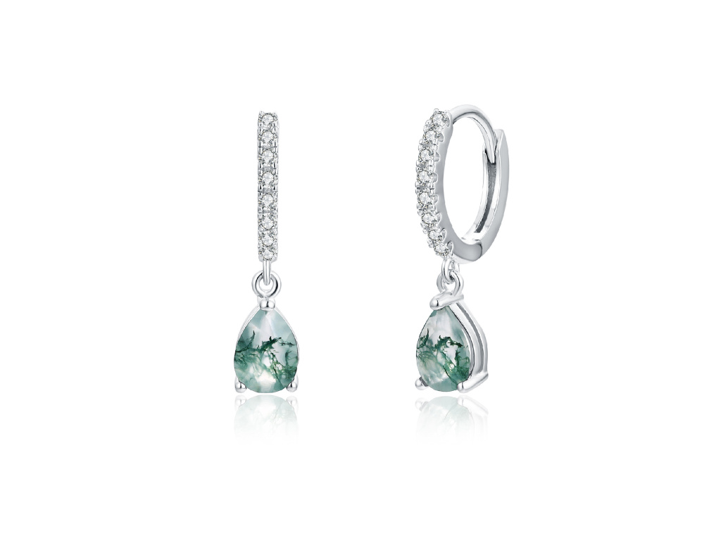 STRIEBORNÉ NÁUŠNICE MECHOVÝ ACHÁT