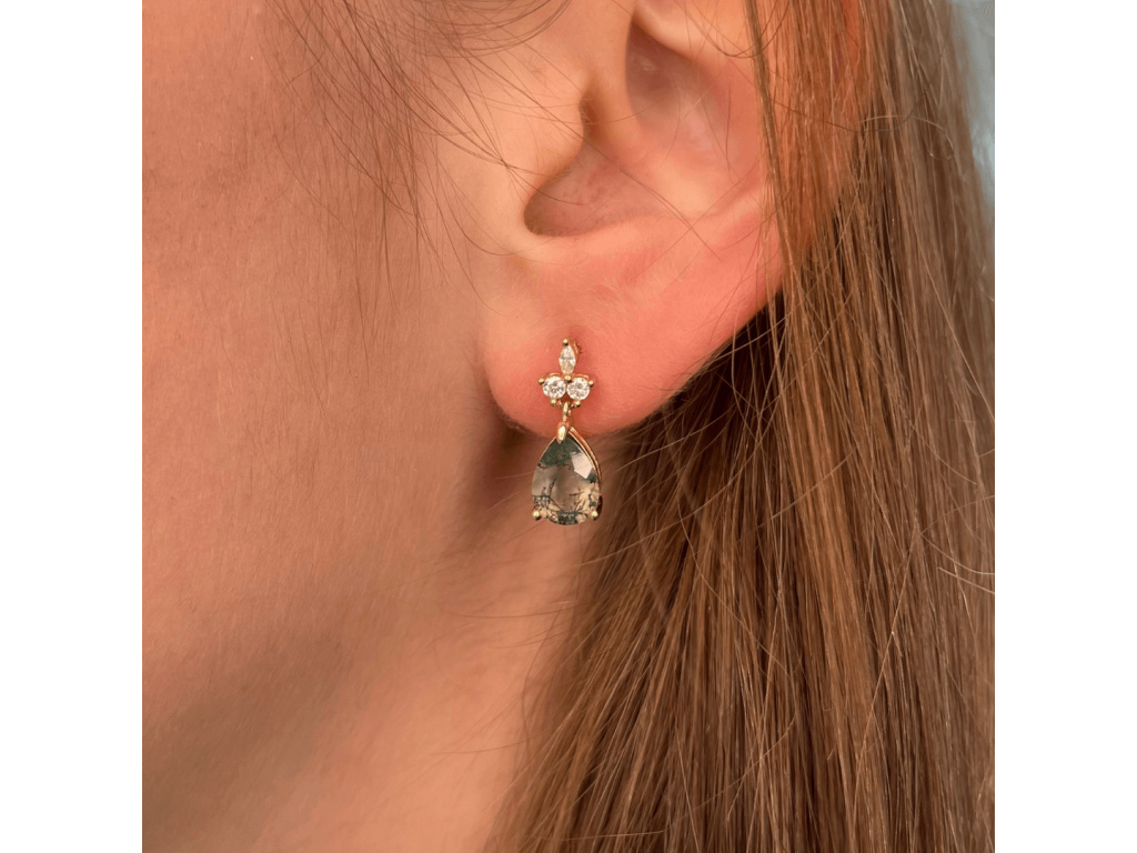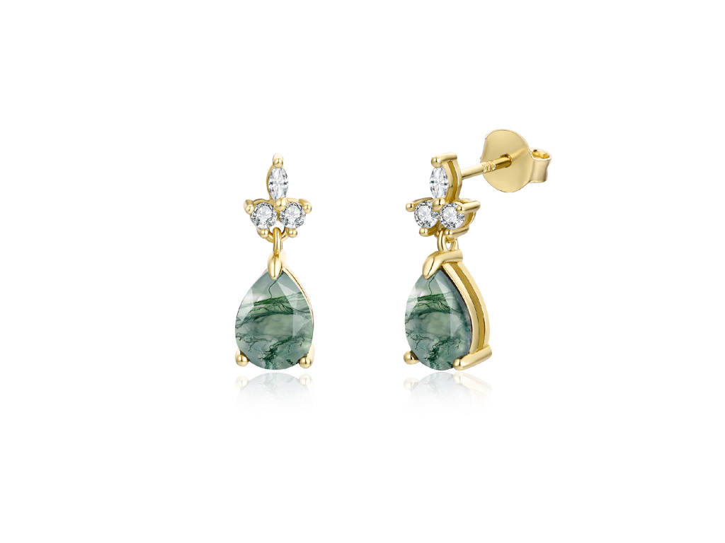 8407 Strieborné náušnice MECHOVÝ ACHÁT GOLD Ag 925; ≤1,8 g.