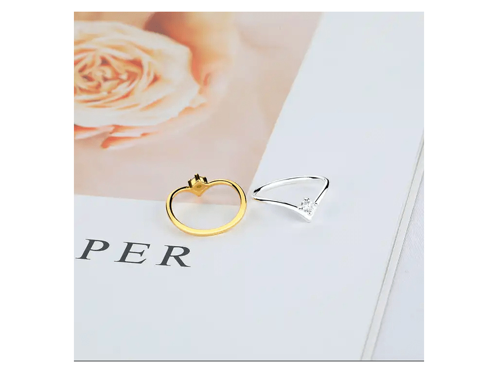 STRIEBORNÝ PRSTEŇ ŠÍPKA GOLD