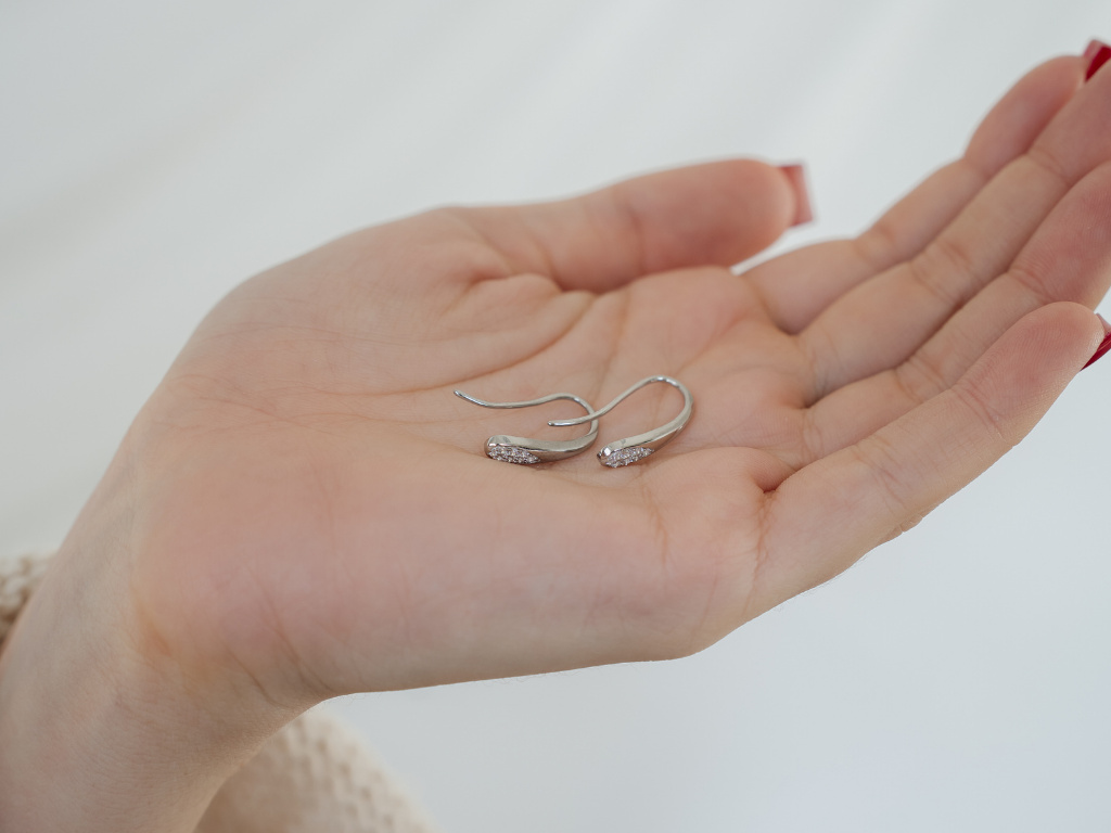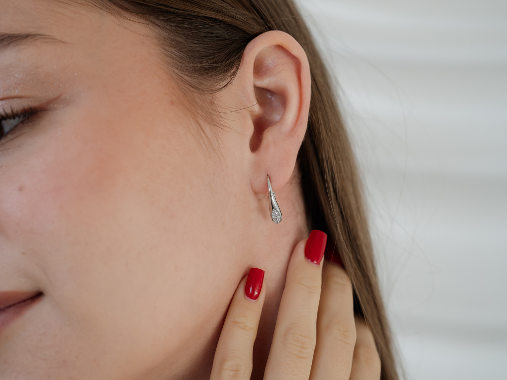 Náušnice sú vyrobené zo striebra 925/1000 a sú označené puncovou značkou rýdzosti.