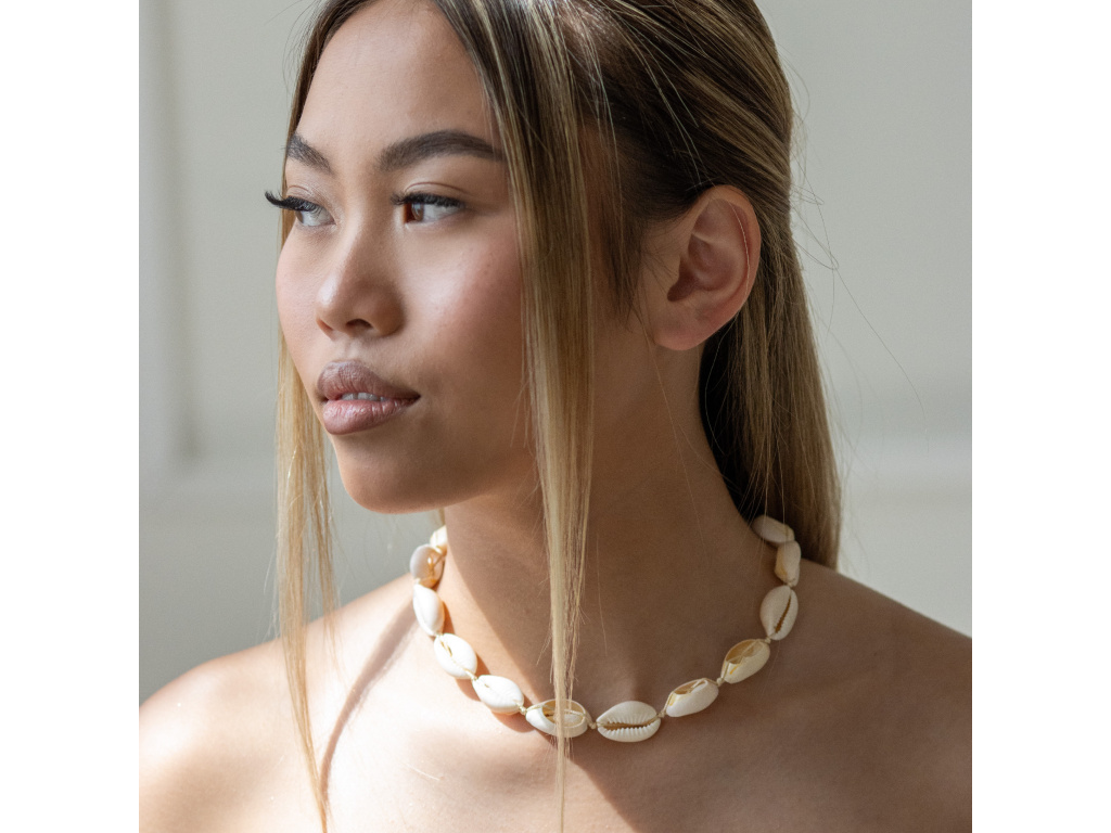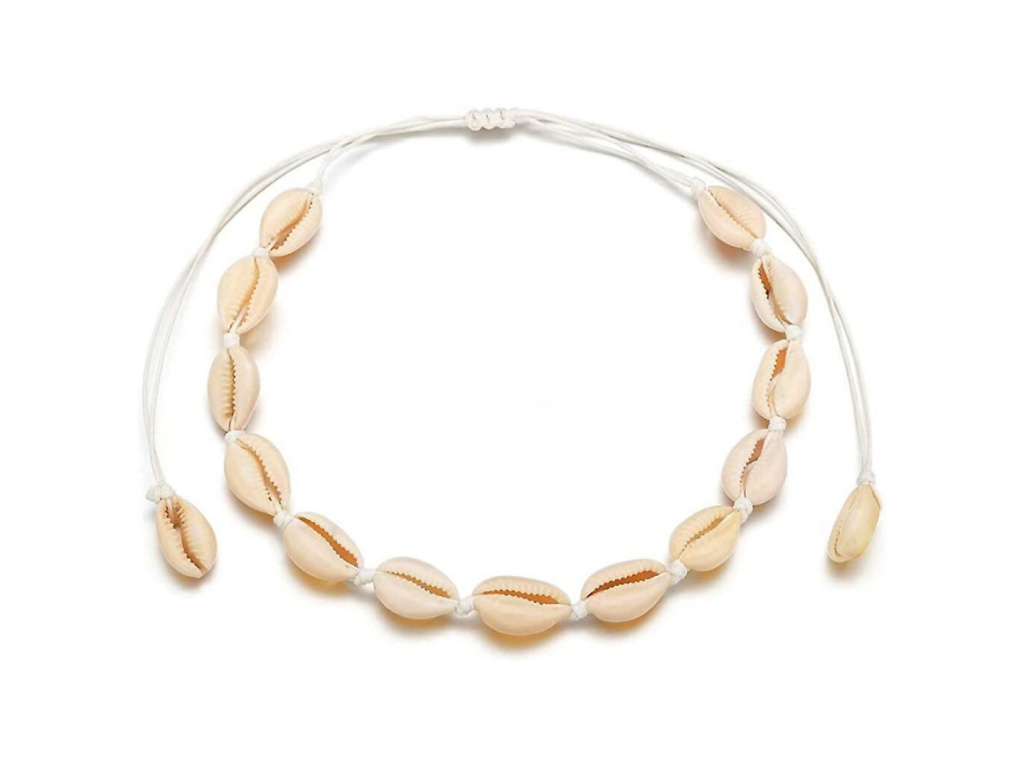 Letný šperk z prírodných mušlí Cowrie.